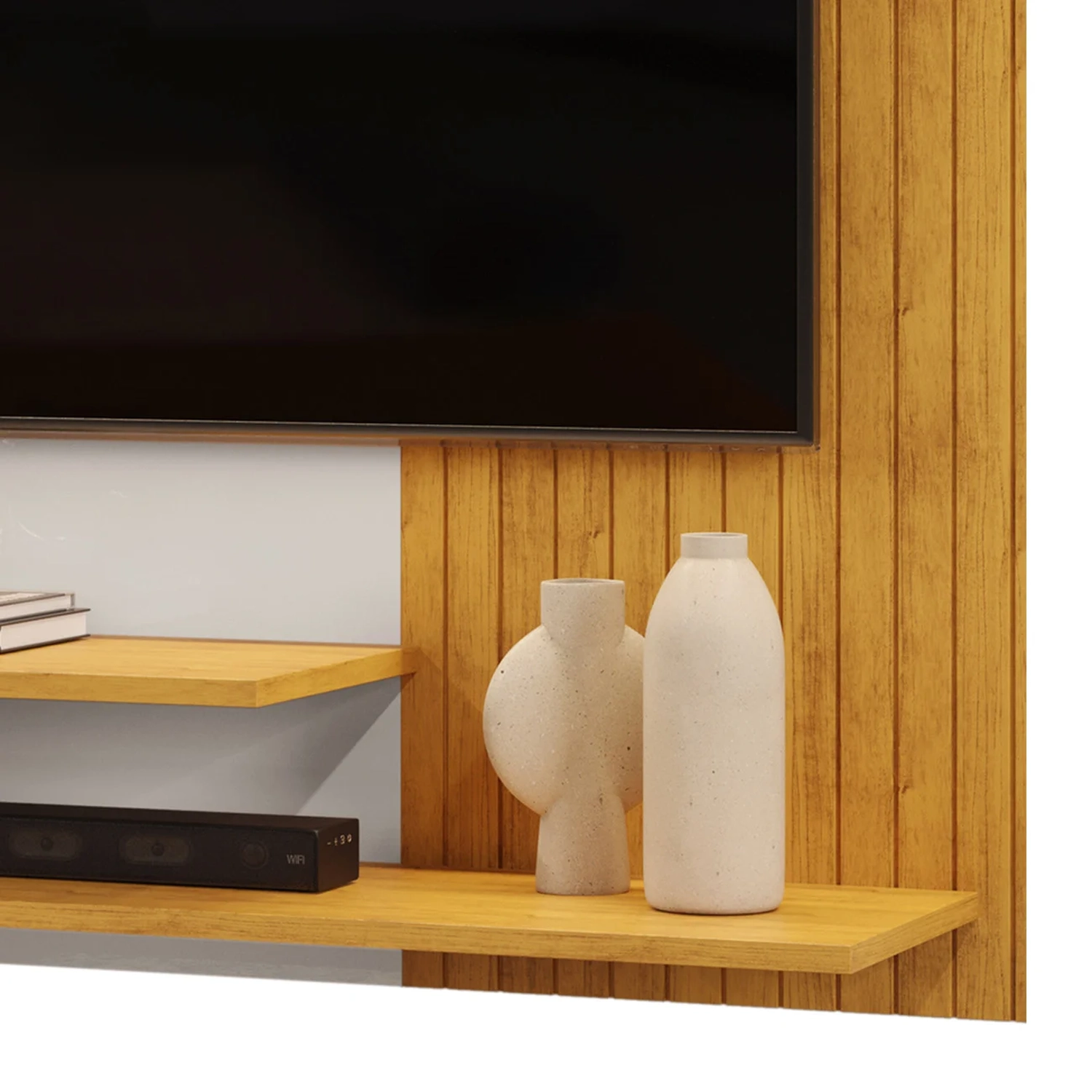 - Painel com frisos decorativos.