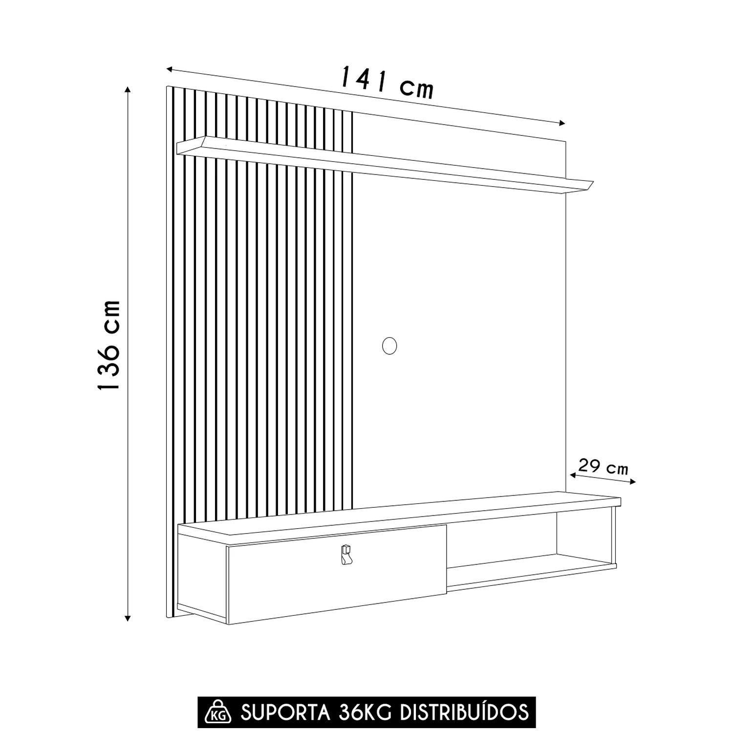 Desenvolvido para ser fixado na parede, O Painel De TV oferece a combinação perfeita de estilo e praticidade. A porta basculante com dobradiças metálicas garante fácil acesso ao espaço interno, enquanto o Painel lateral em MDF frisado acrescenta um toque elegante. O puxador com acabamento sintético e em poliestireno são detalhes que fazem toda a diferença, proporcionando um visual único e refinado. A prateleira superior com borda chanfrada, juntamente com os painéis em MDP e MDF de 15 e 25mm, oferece resistência e durabilidade ao móvel, além de um acabamento de alta qualidade. Com uma estrutura projetada para TV de até 55, A Bancada Suspensa é a opção perfeita para otimizar seu espaço e dar um toque de sofisticação ao ambiente.