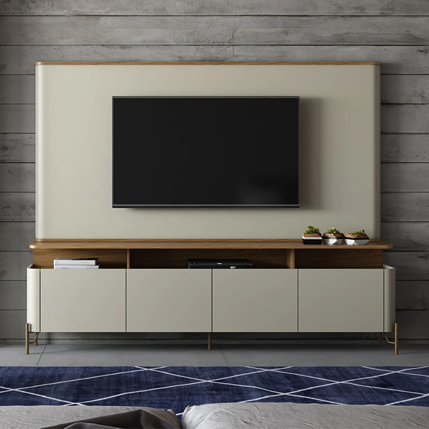Painel TV 55 Pol e Rack Sala Porta Lisa Blen Louro/Luna/Dourado I06 - Mpozenato