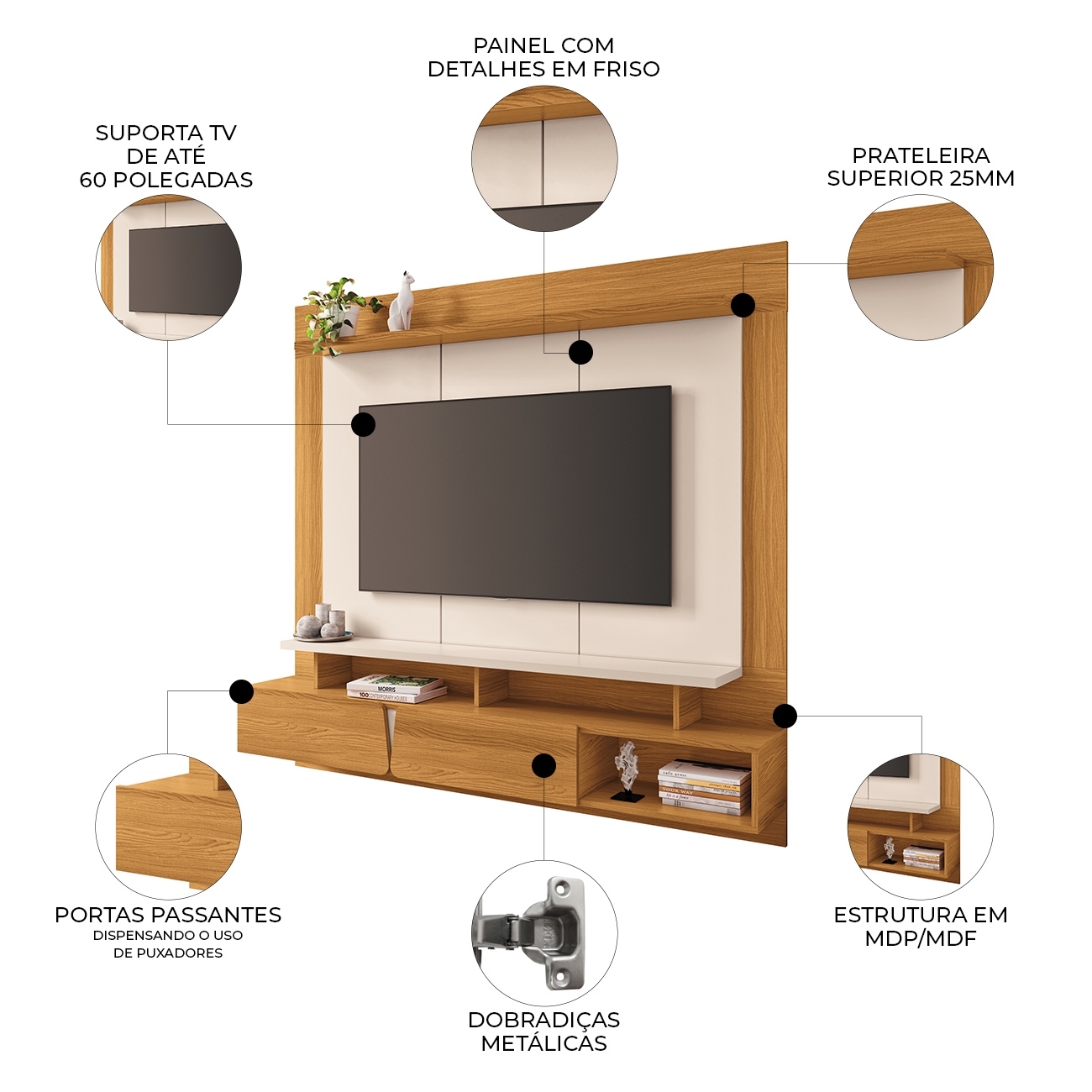 Painel TV 60 Pol 160cm Bancada Suspensa Zenith Cinamomo/Off - HB Móveis
