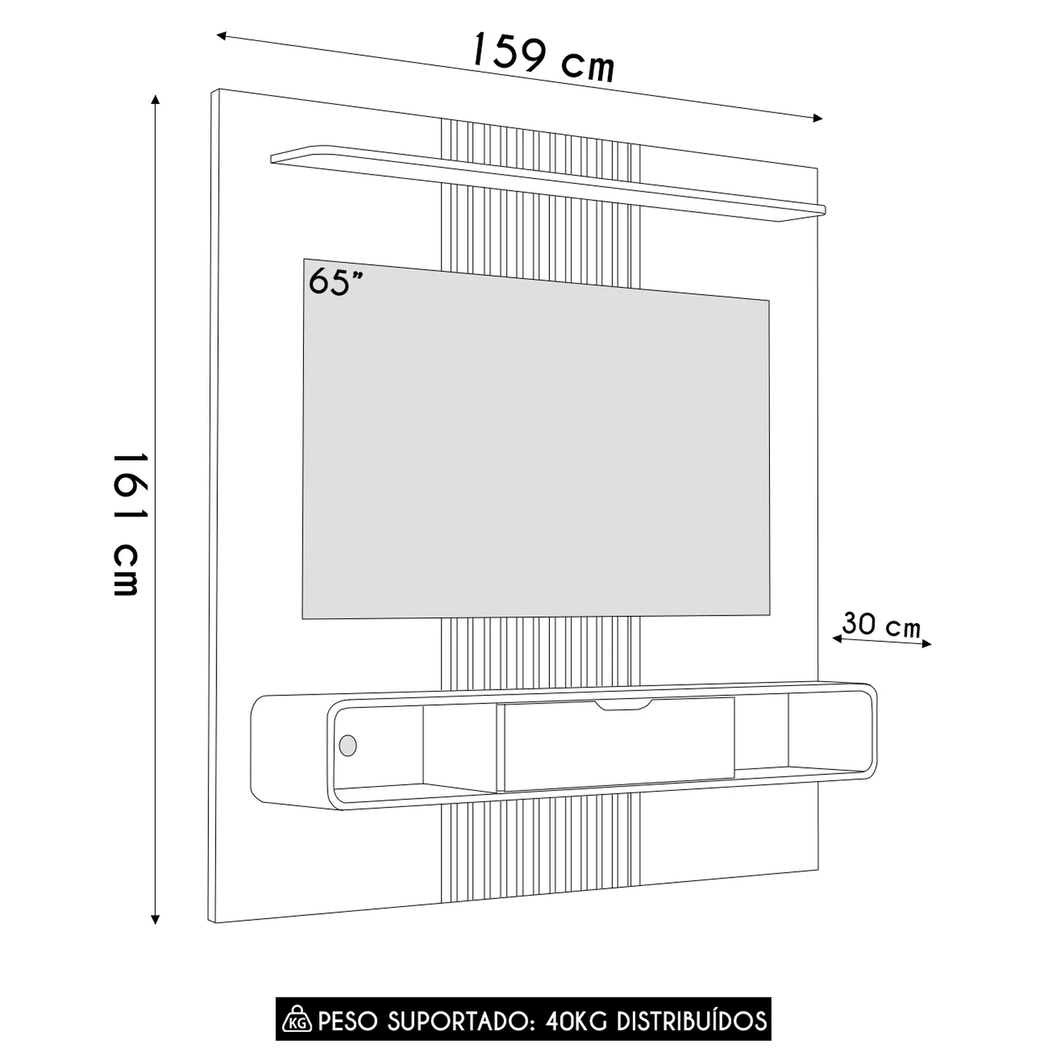 Profundidade: 30cm.