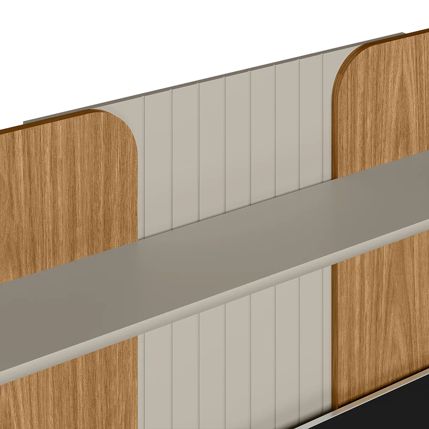 Os frisos e os cantos arredondados do painel oferecem uma aparência suave e contemporânea, garantindo um design clean e elegante. Esses detalhes proporcionam um toque de modernidade, tornando o produto ainda mais atraente para ambientes de diferentes estilos.