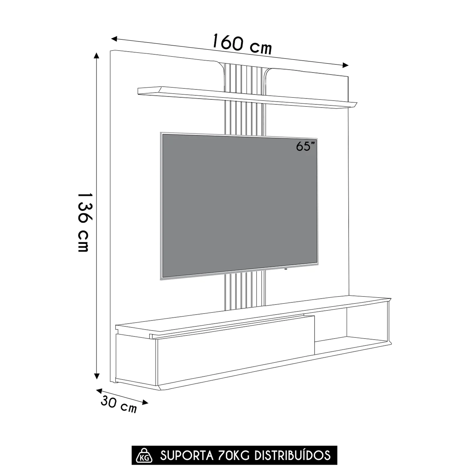 Fabricado com materiais de alta qualidade, como MDP e MDF, o Painel Home de TV Illumi é a escolha ideal para quem busca um design elegante e funcional. Com 160cm de largura, ele acomoda TVs de até 65 polegadas, proporcionando um visual moderno e sofisticado que transforma qualquer Sala de Estar em um ambiente mais acolhedor e estiloso.