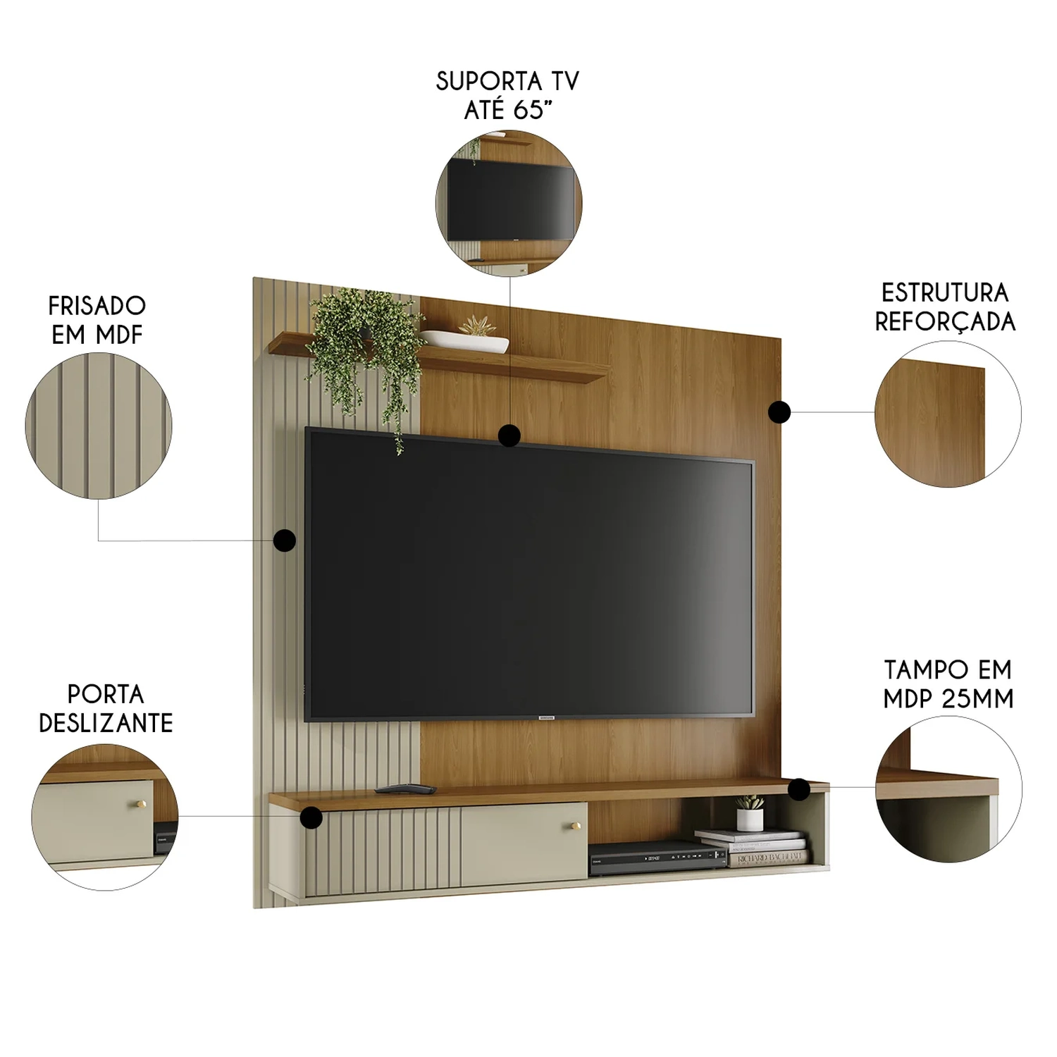 O Painel TV 65 Pol e Bancada Suspensa Neris M01 Cumaru/Opala, da Mpozenato, é a escolha ideal para quem deseja aliar funcionalidade e design sofisticado.