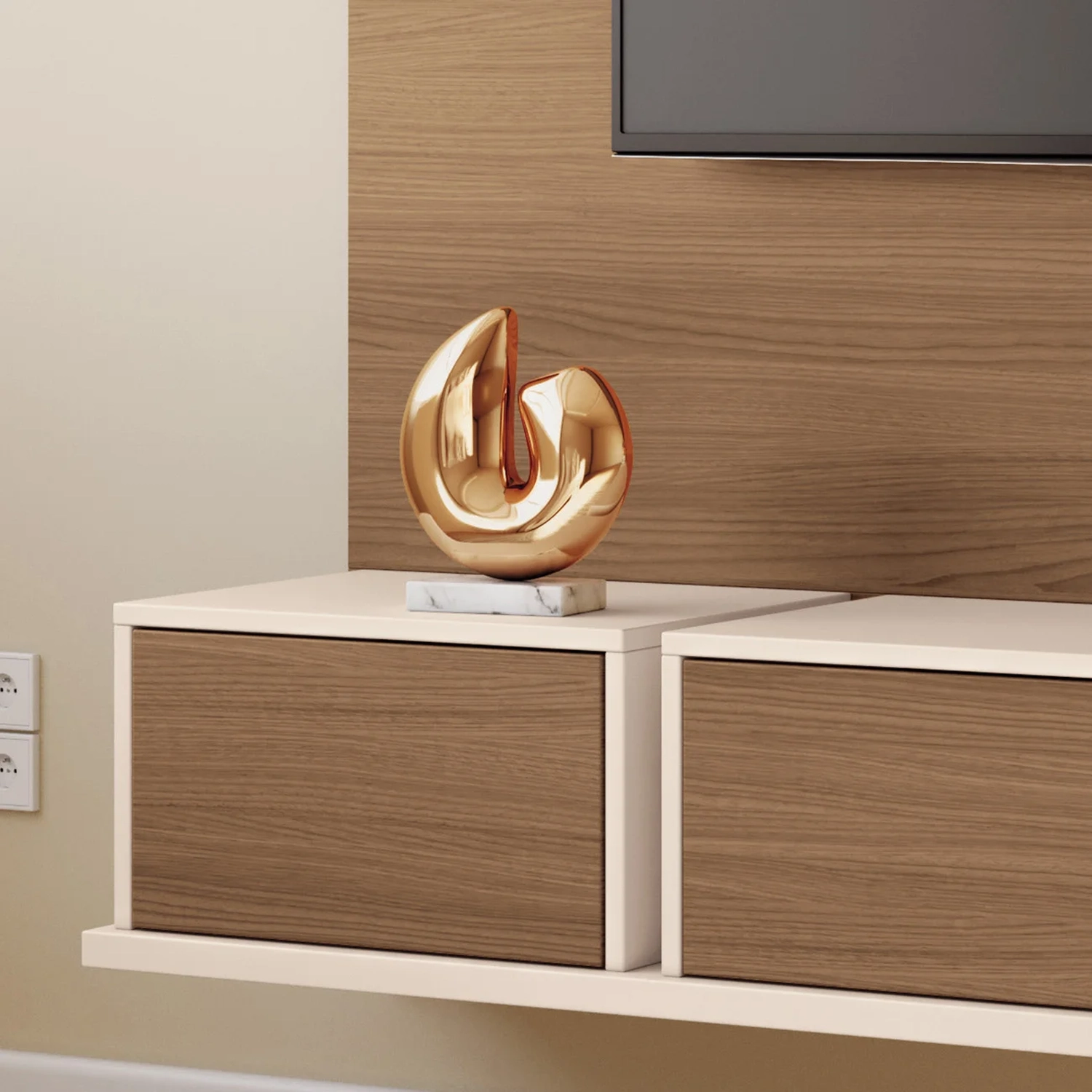 Ideal para TVs de até 70 polegadas, o Painel Para TV permite que o aparelho seja fixado diretamente, proporcionando um visual sofisticado e um aproveitamento de espaço eficiente. A combinação de linhas retas com acabamentos minimalistas garante um toque elegante e funcional ao ambiente. O Painel Suspenso é equipado com três portas basculantes, que possuem dobradiças metálicas e sistema de abertura por fecho toque, garantindo praticidade e um design sem puxadores visíveis. As portas basculantes adicionam um toque de modernidade, sem abrir mão da funcionalidade e praticidade no dia a dia. Além disso, a prateleira superior de 25mm foi projetada para acomodar decorações e outros itens. Fabricado em MDP e MDF, de 25mm e 15mm, garantindo robustez, estabilidade e durabilidade. A escolha perfeita para quem busca aliar design moderno, funcionalidade e resistência em um único produto.