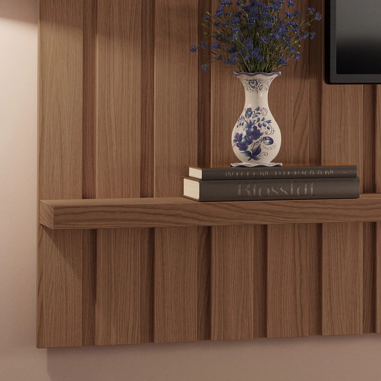 O Painel Para TV é uma ótima opção para quem busca um móvel moderno e sofisticado para a Sala De Estar. Ele possui um ripado que já vem montado de fábrica, garantindo um acabamento perfeito e uma instalação prática. Além disso, ele conta com uma prateleira robusta de 37mm de espessura, ideal para acomodar objetos decorativos. A estrutura do painel é feita em MDP e MDF de alta qualidade, com espessuras de 37mm e 15mm. O Painel Suspenso também oferece uma montagem flex, permitindo que você escolha entre duas opções de utilização, invertendo sua posição na parede e ele suporta TV até 70 polegadas. Você pode usar somente o painel ou pode combinar com bancada, criando um conjunto harmonioso e elegante para o seu ambiente.