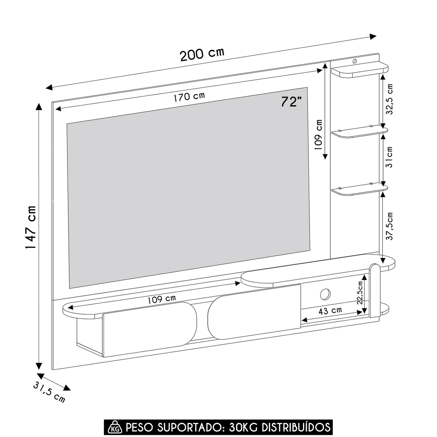 Peso Suportado: 30 kg distribuídos.