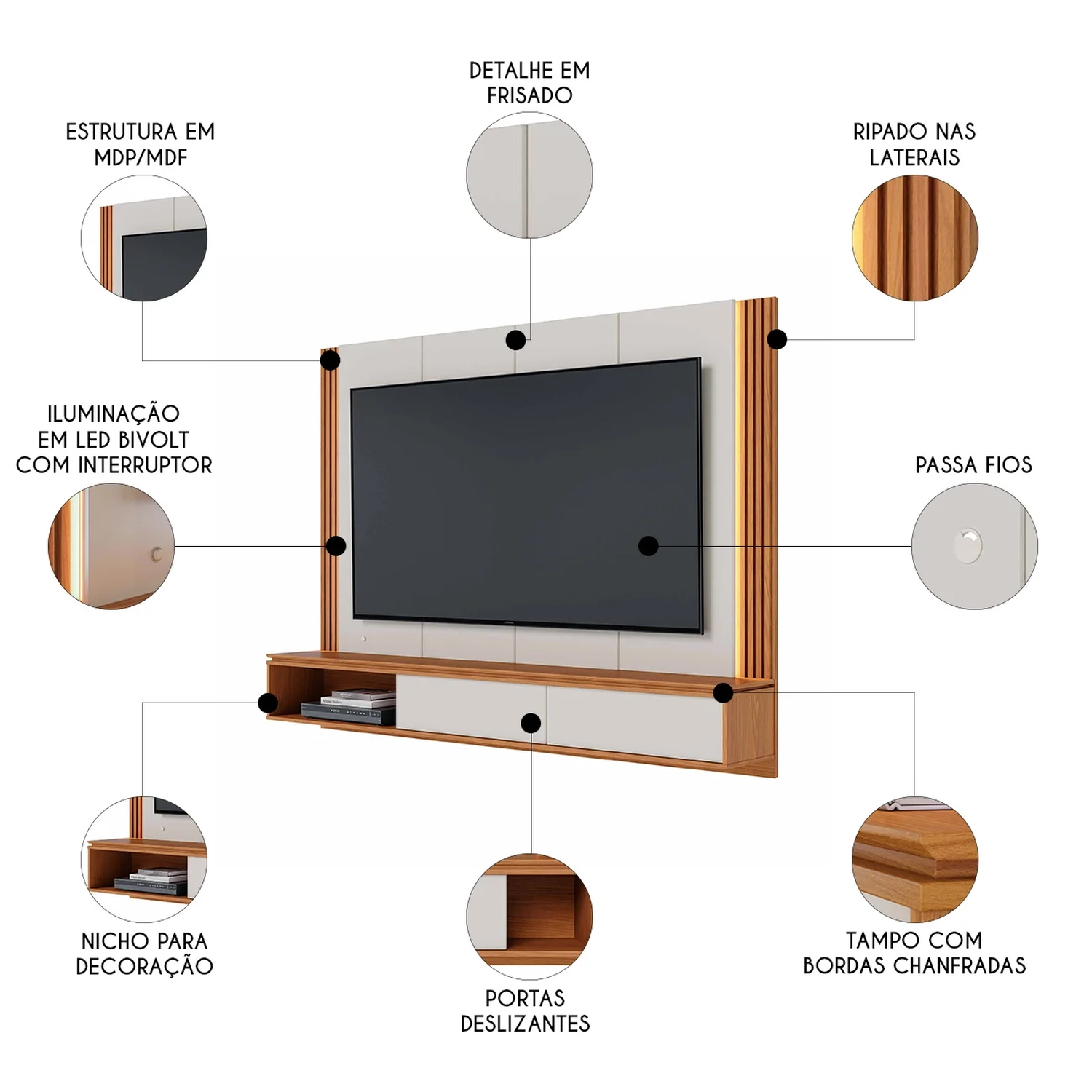Painel TV 75 Pol e Bancada Suspensa Trento Off White/Freijó C05