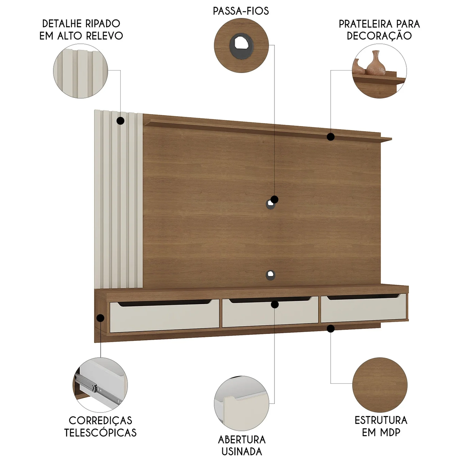 Painel Tv 75 Pol e Bancada Suspensa Vale Cinamomo/Off A09 - Mpozenato