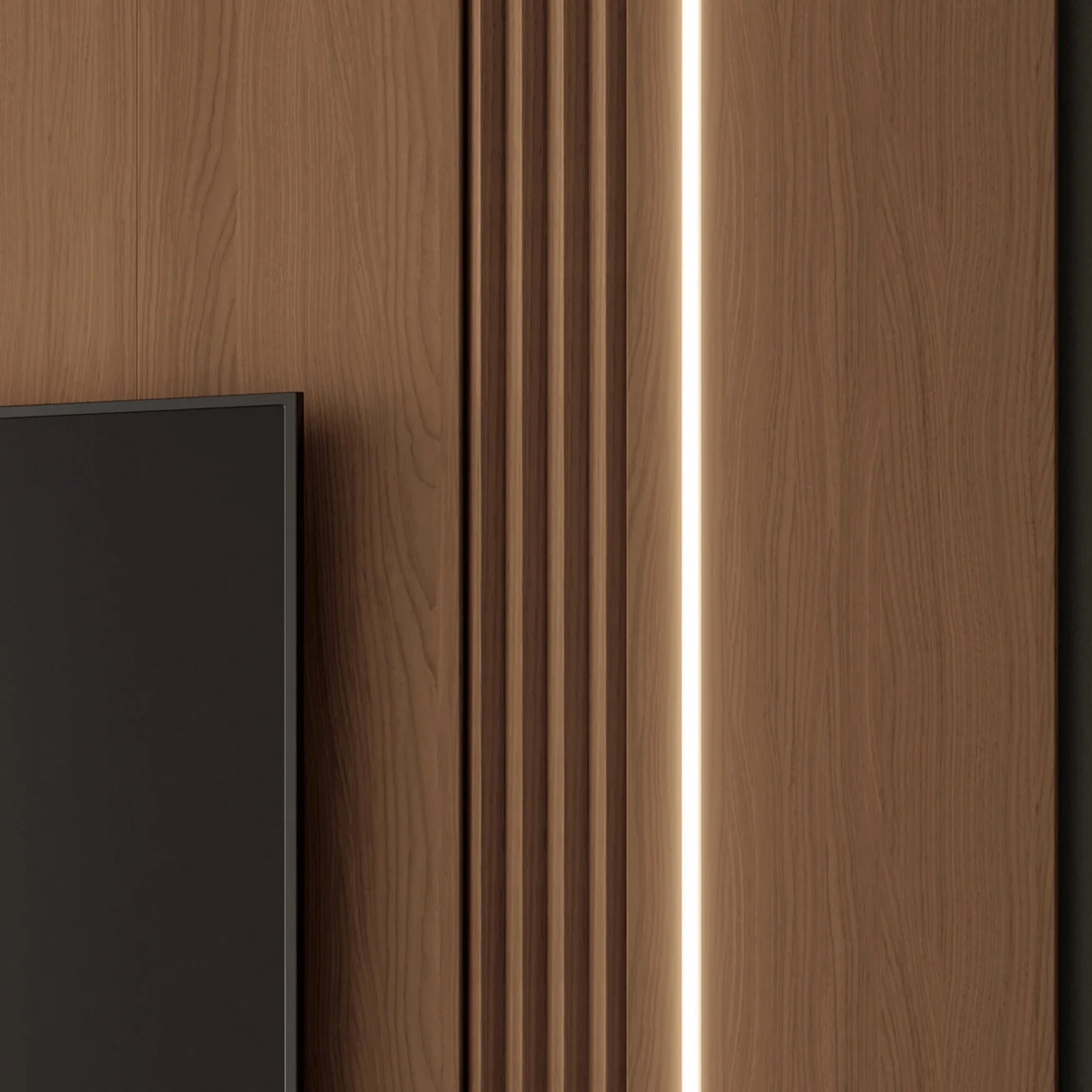 Ele tem um design imponente, com iluminação de LED no painel e detalhe canelado nas laterais e nas duas portas, que dão um toque de sofisticação e modernidade. Além disso, ele conta com portas de correr com trilho em alumínio, que garantem praticidade e durabilidade. O Home para TV de até 85 polegadas tem ainda cantos arredondados, que proporcionam mais segurança e harmonia ao ambiente. Ele é produzido em MDP e MDF com espessura de 15mm o que garante resistência e qualidade ao produto. E o melhor: o detalhe canelado nas portas dispensa o uso de puxador deixando um design ainda mais moderno. Sem dúvidas o Painel para TV que vai transformar a sua sala de estar em um espaço mais bonito e aconchegante.