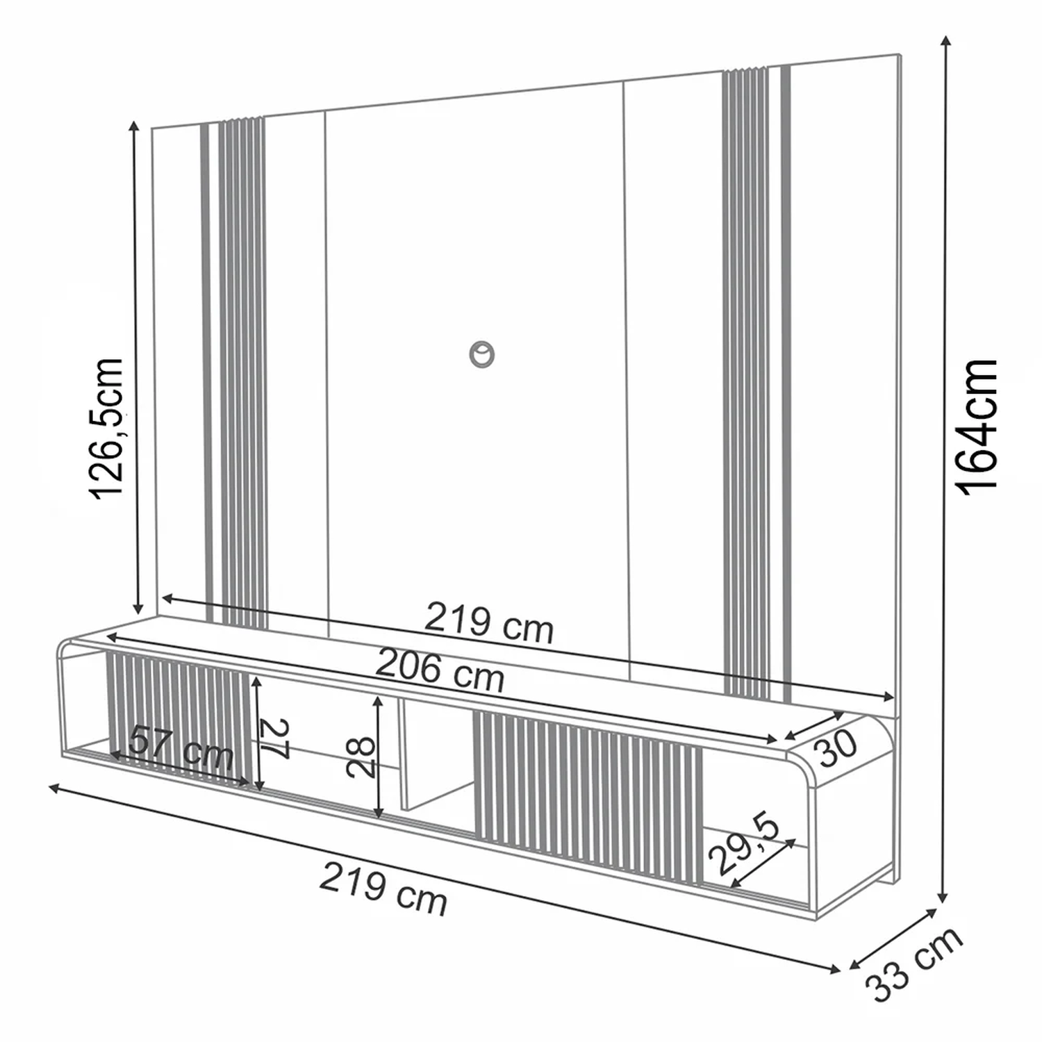 Se você está procurando um móvel que valorize a sua Sala De Estar e acomode a sua TV de forma elegante e funcional, o Painel TV 85 Pol 219cm Bancada Suspensa Empire Off/Cinamomo, da HB Móveis é a escolha ideal.
