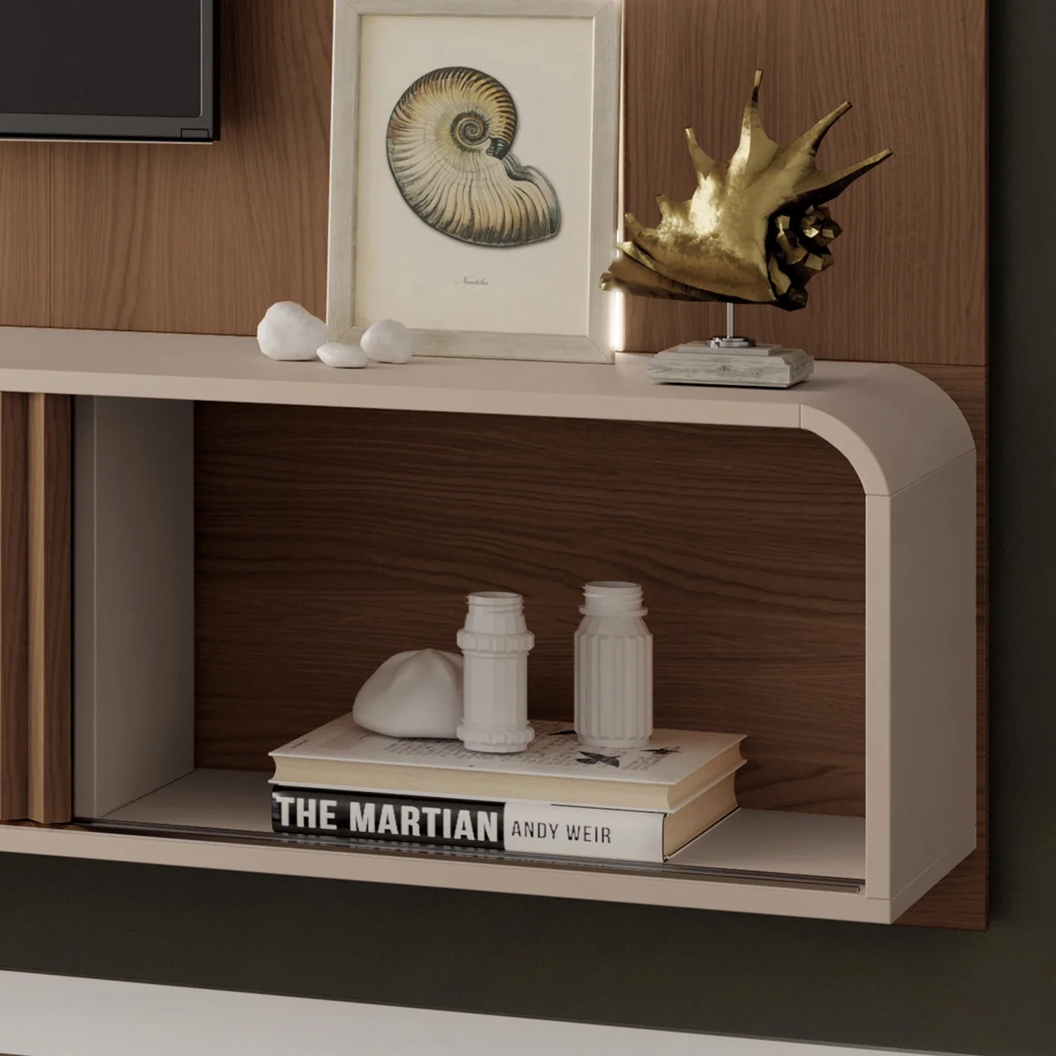 Se você está procurando um móvel que valorize a sua Sala De Estar e acomode a sua TV de forma elegante e funcional, o Painel TV 85 Pol 219cm Bancada Suspensa Vivaz H01 Off/Castanho, da Mpozenato é a escolha ideal.