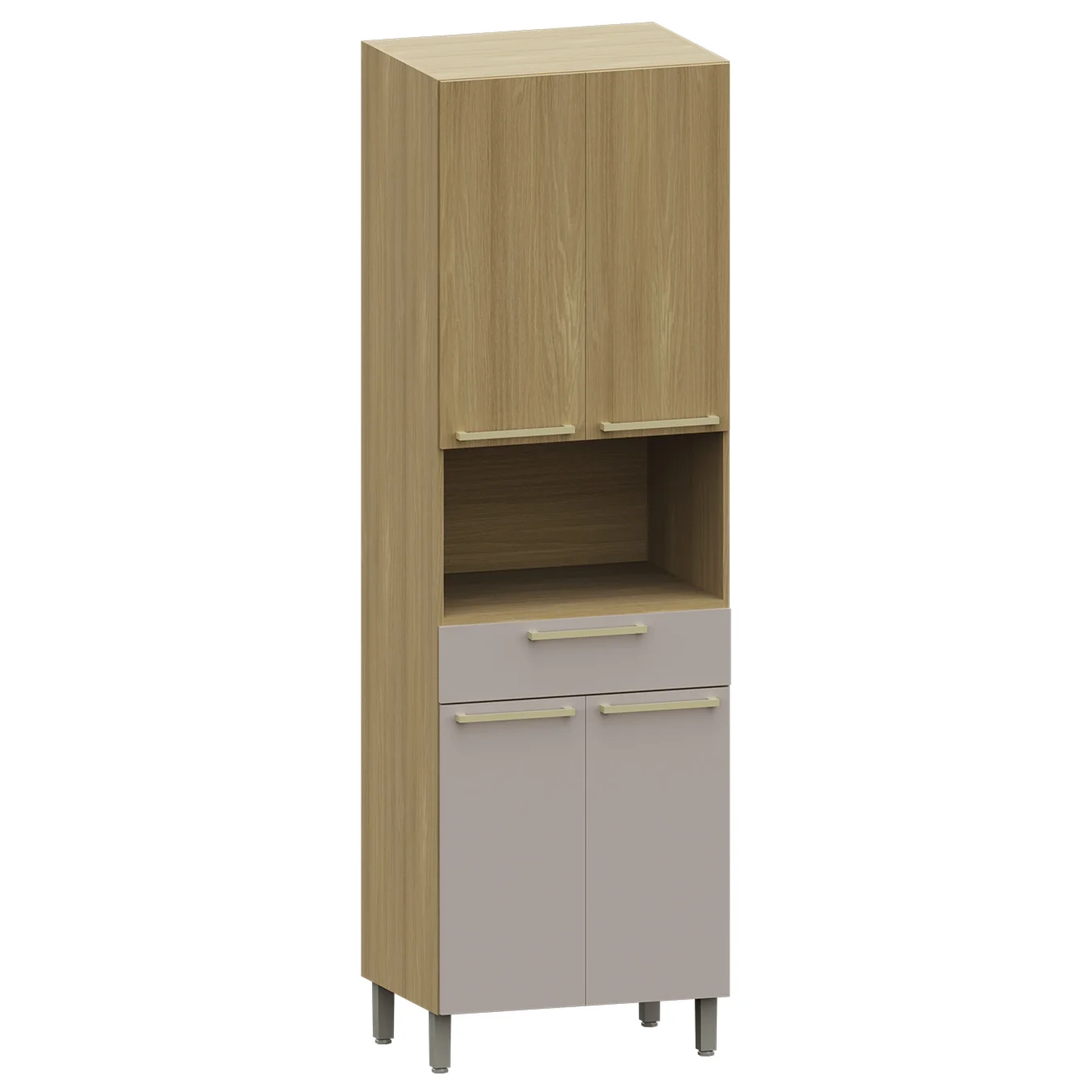 Com pés com regulagem de altura o Paneleiro Para Cozinha, você pode adaptá-lo facilmente às necessidades do seu espaço. E os rodapés complementam o visual, trazendo mais elegância e harmonia para sua Cozinha.