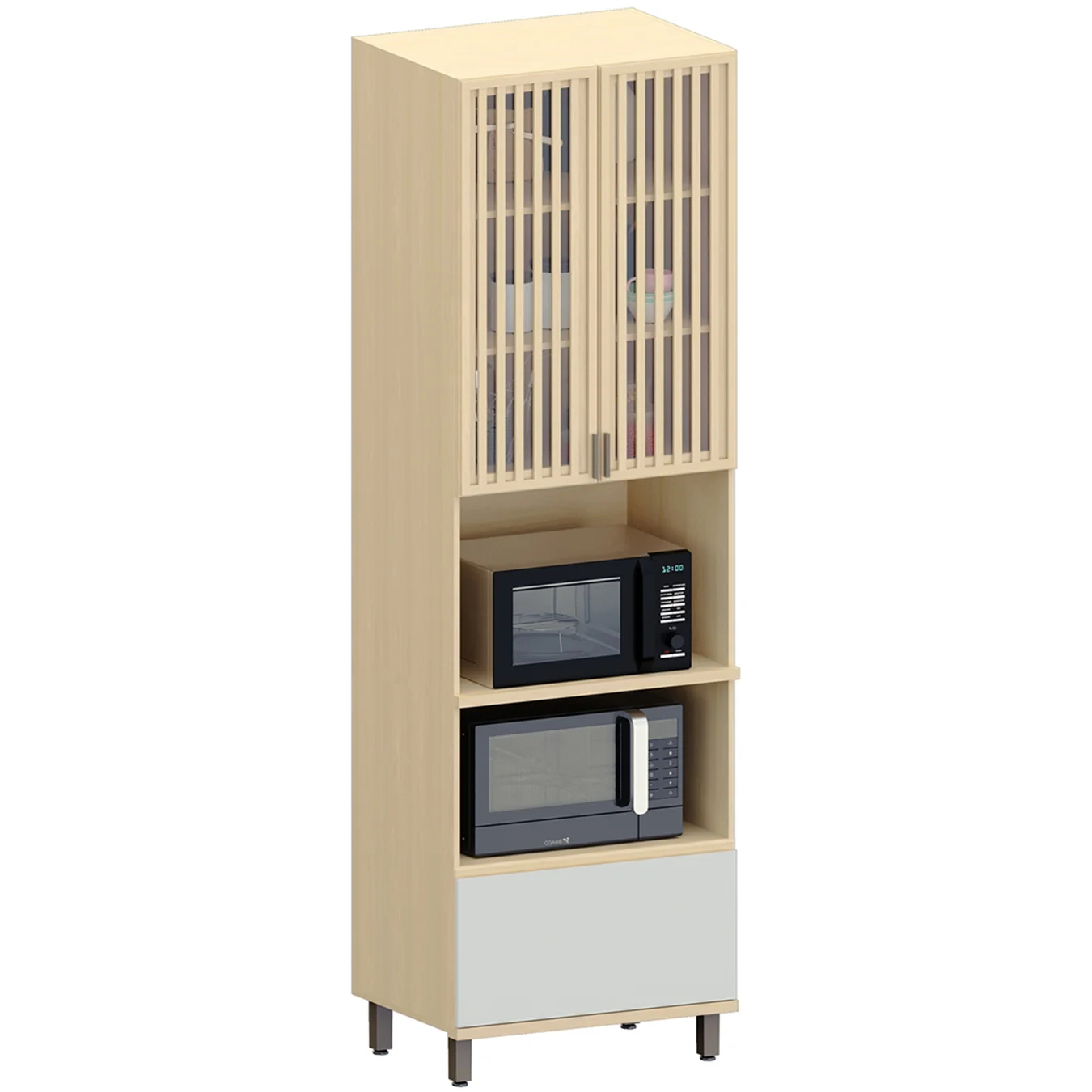 Paneleiro Cozinha Torre Quente Ripado Pierre Carvalho/Cinza L01 - Mpozenato