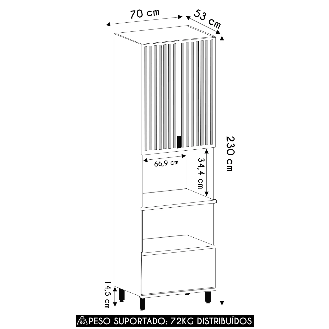 Espaço livre para forno ou micro-ondas: 66,9 x 34,4cm.