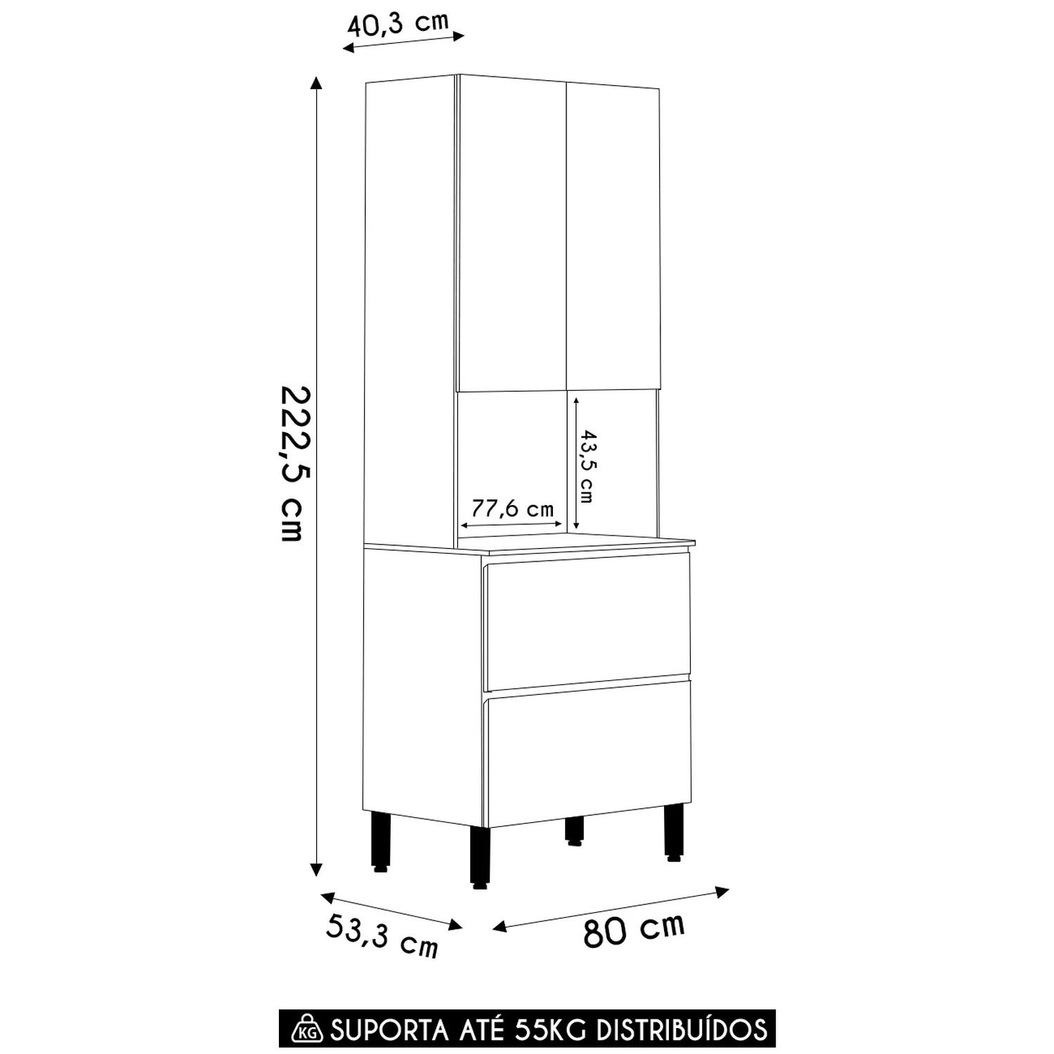 Espaço Livre Para Micro-ondas: 77,6 x 43,5 cm.