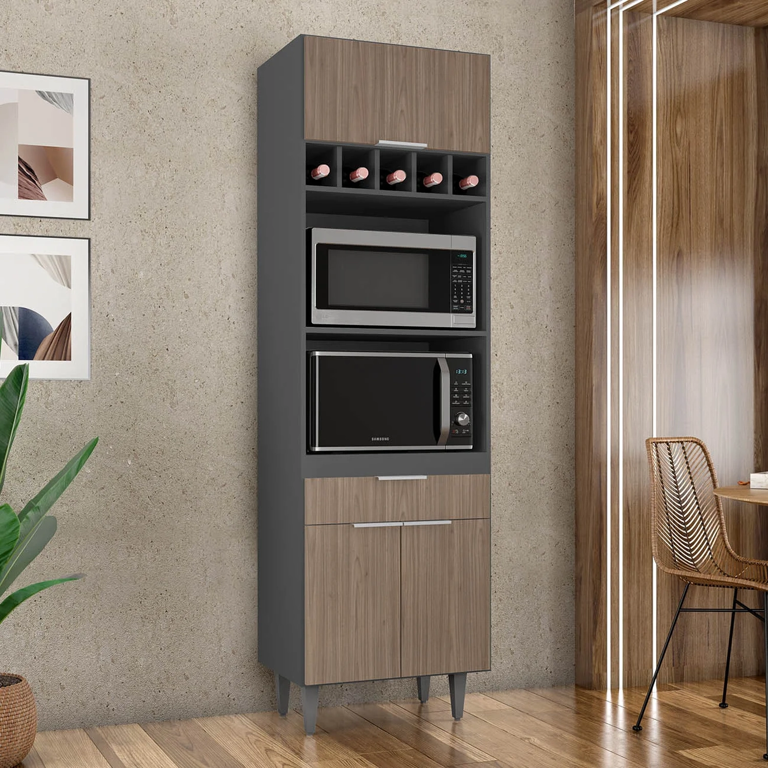 Compor a Cozinha com praticidade e estilo pode ser mais fácil do que você imagina. Com o Paneleiro de Cozinha Torre Quente Pérola Z34 Grafite/Freijó da Mpozenato, você transforma seu espaço, tornando-o mais moderno, funcional e perfeito para o seu dia a dia.