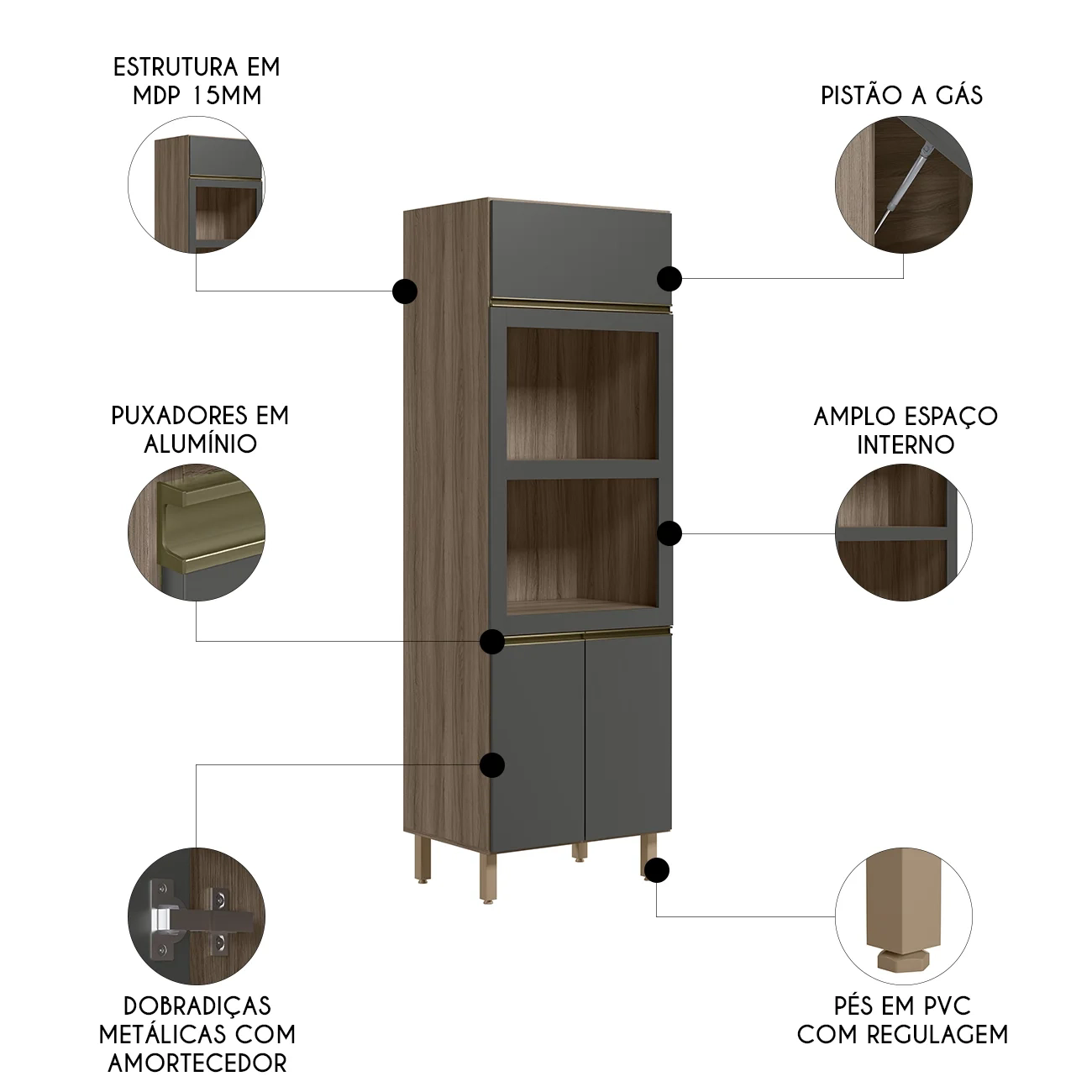 O Paneleiro Torre Quente Duplo Maly N03 Carvalho/Grafite, da Mpozenato é um móvel de cozinha funcional e moderno, projetado para oferecer praticidade e organização ao ambiente.