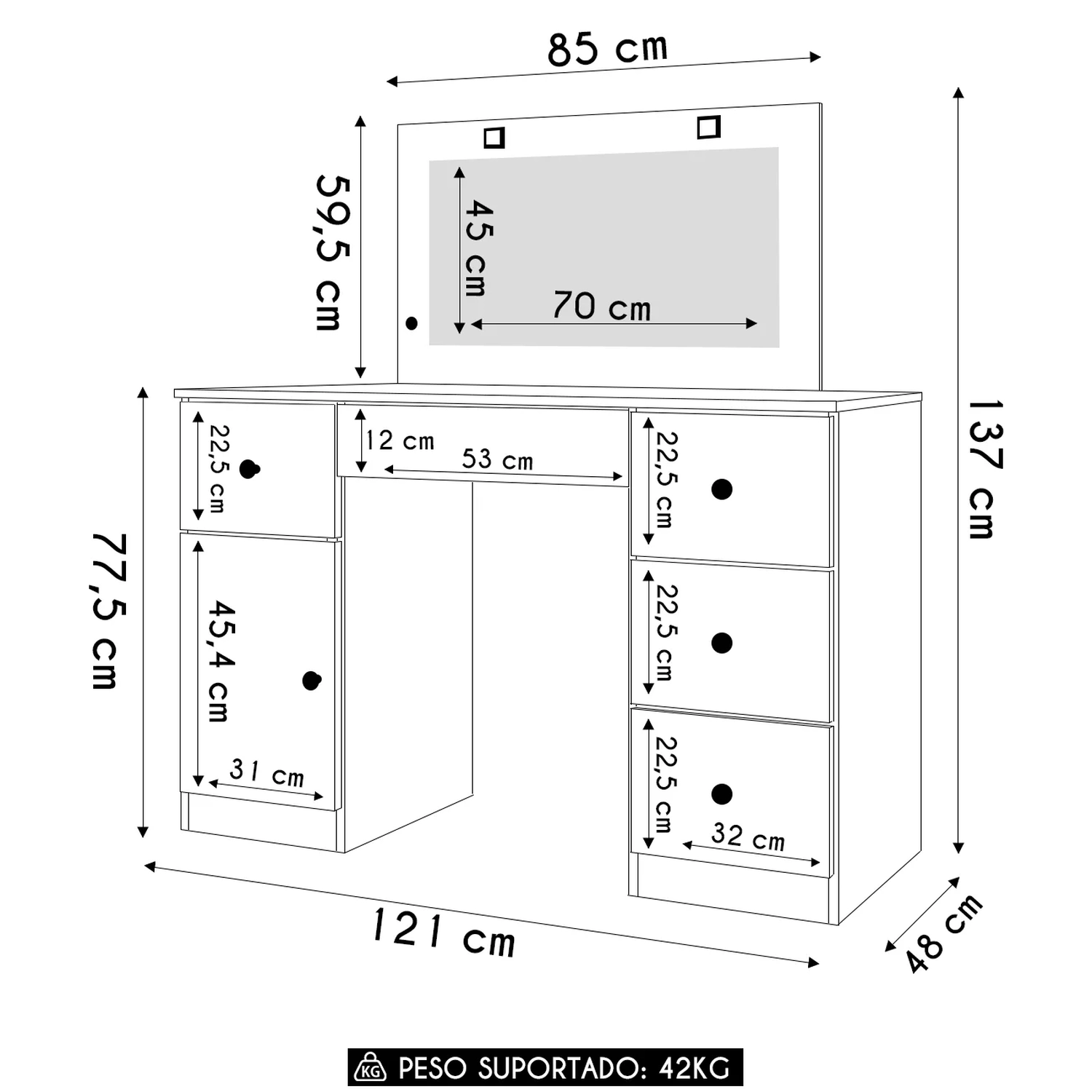 Peso Suportado: 42 kg distribuídos.