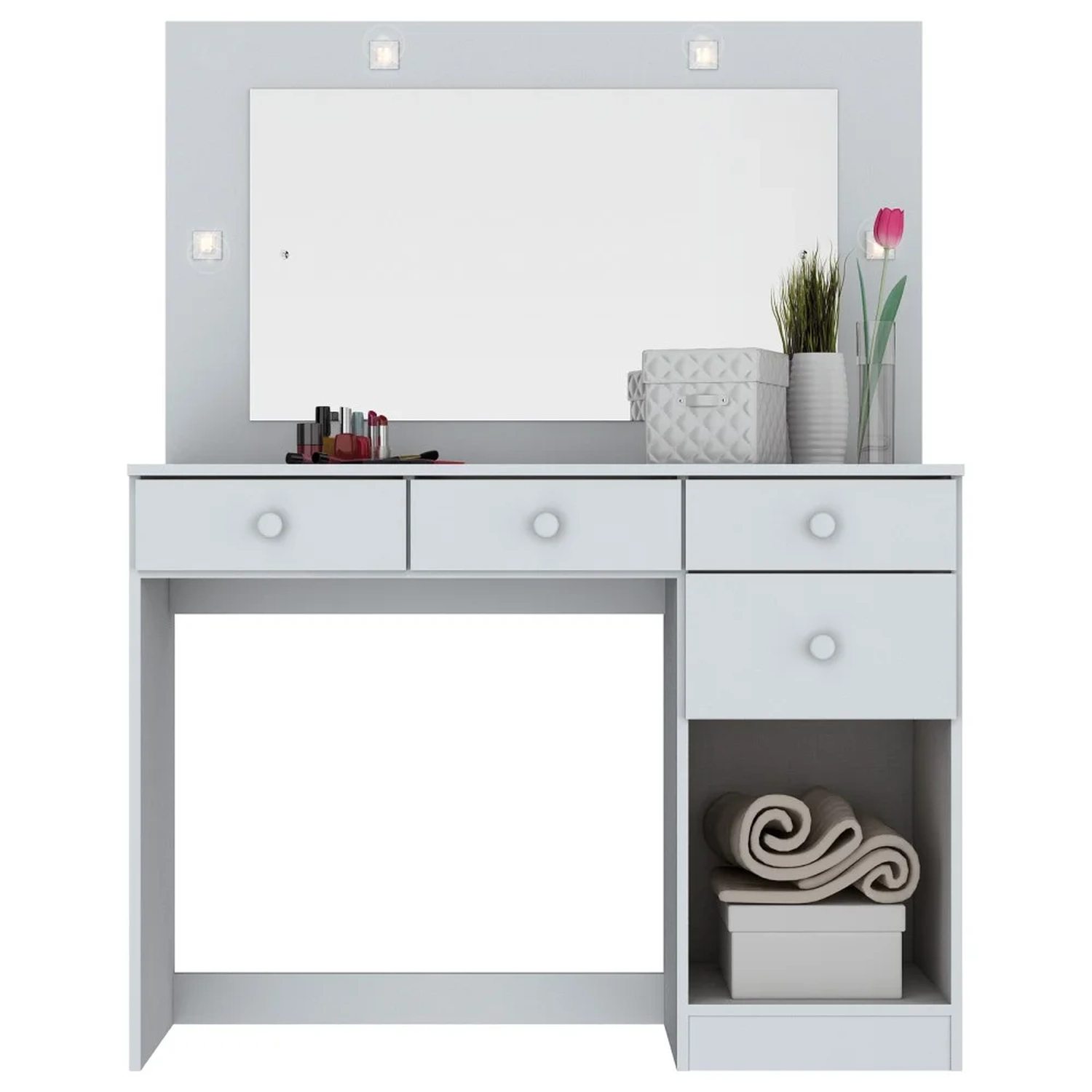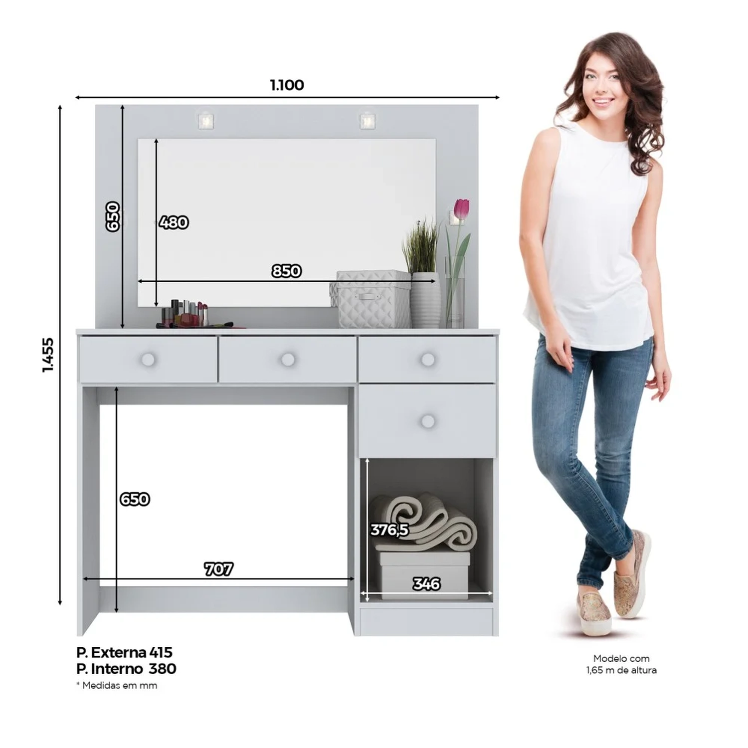 A Penteadeira Camarim Claires com Espelho e LED Branco, é prática e moderna, ideal para complementar seu quarto oferecendo charme e organização. Ela conta com espelho, luz de Led com interruptor discreto, 4 gavetas e 1 porta. Sua estrutura é fabricada em MDP com acabamento de excelente qualidade em pintura UV. Lançamento da Henn Móveis, garanta já o seu!