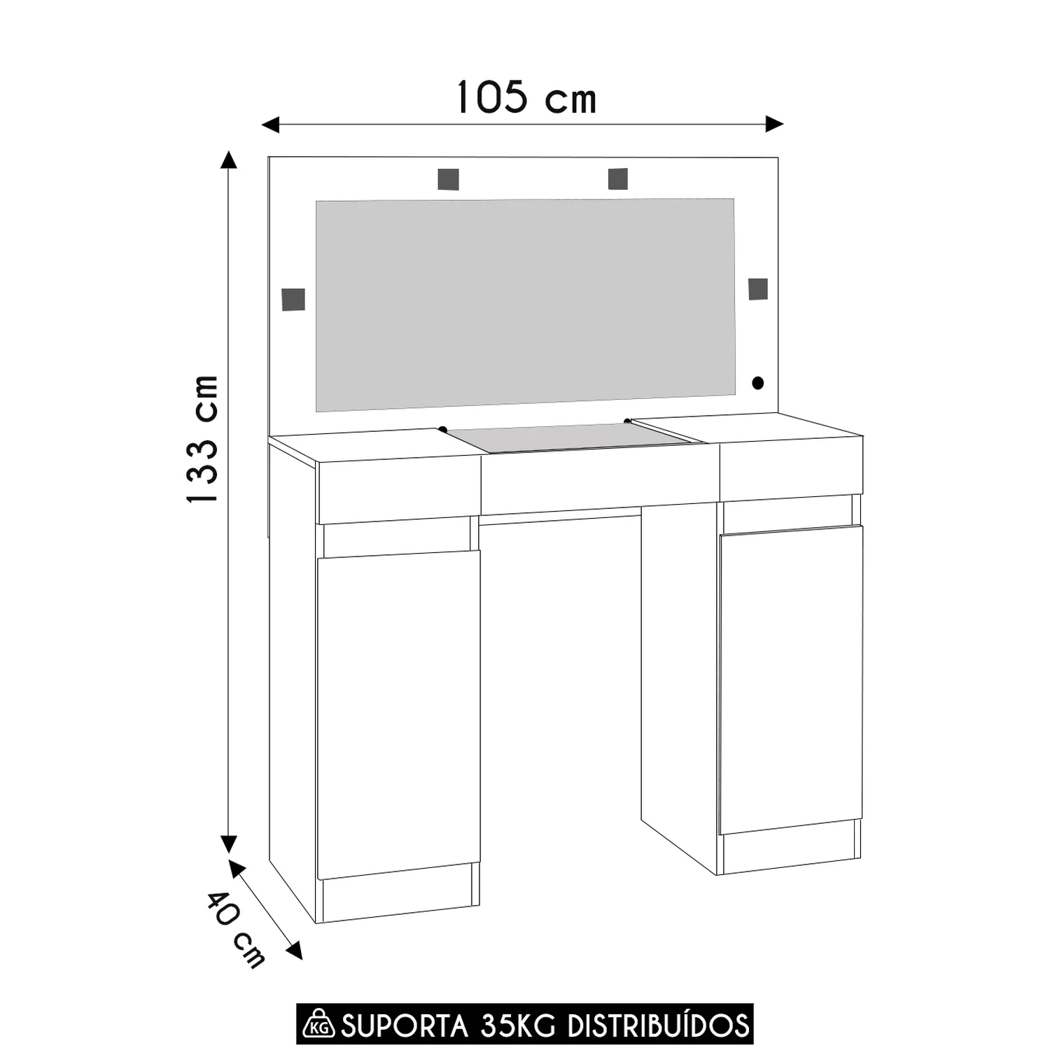 Conteúdo da Embalagem: 1 Penteadeira.