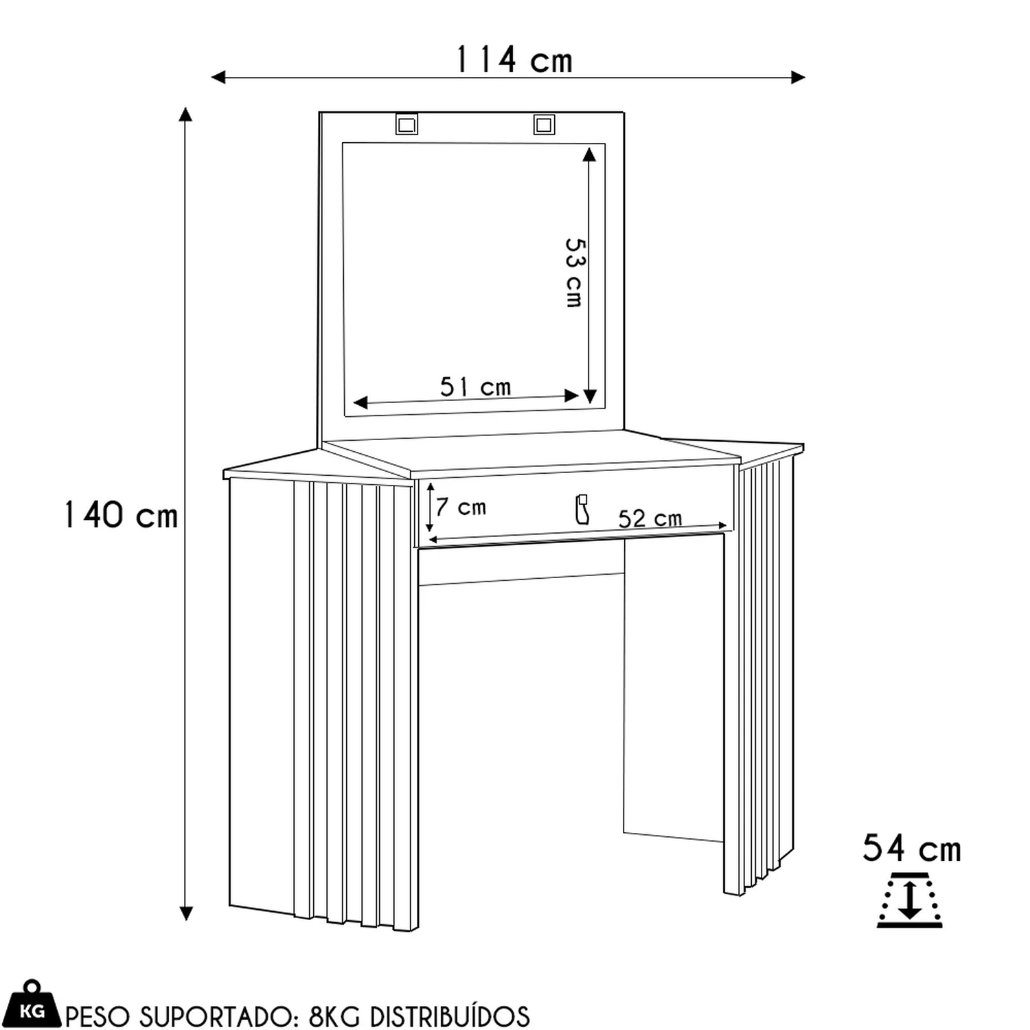 Conteúdo da Embalagem: 1 Penteadeira.