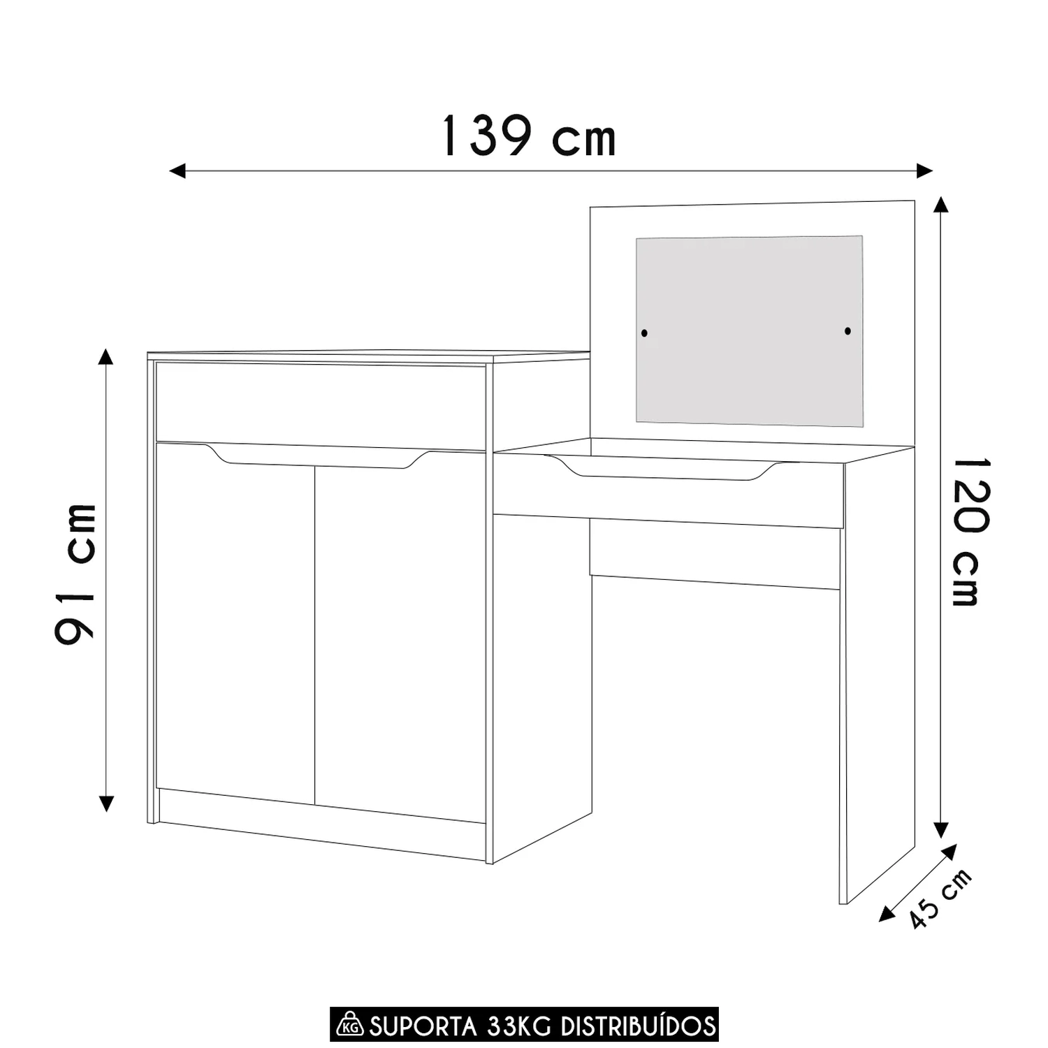 Conteúdo da Embalagem: 1 Escrivaninha Penteadeira.