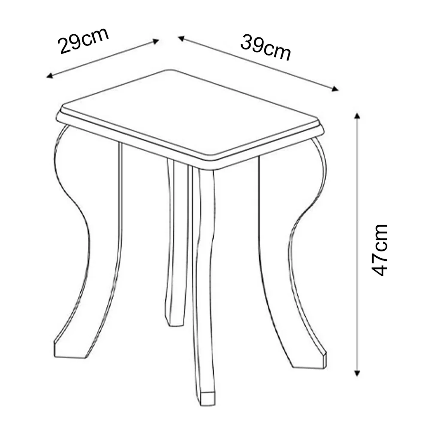 Banqueta: 39 x 47 x 29 cm.