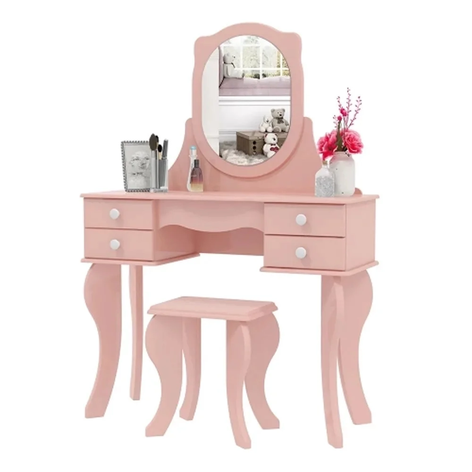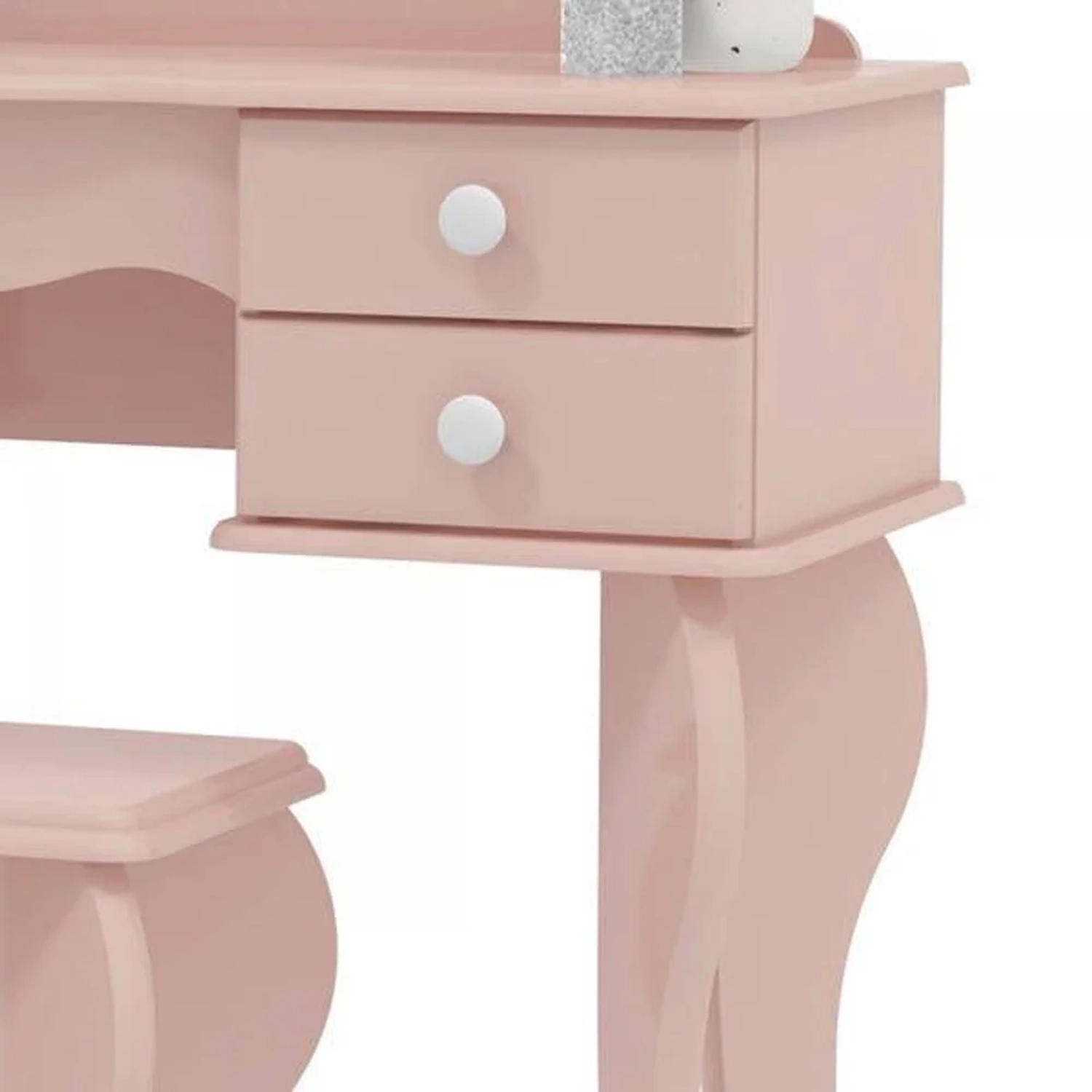 Penteadeira Princesa 04 Gavetas e Banqueta Rosa, dê um toque de charme e elegância com esse lindo modelo de penteadeira da linha Kids Patrimar Móveis excelente para decorar o ambiente e organizar acessórios de maquiagem e cosméticos!