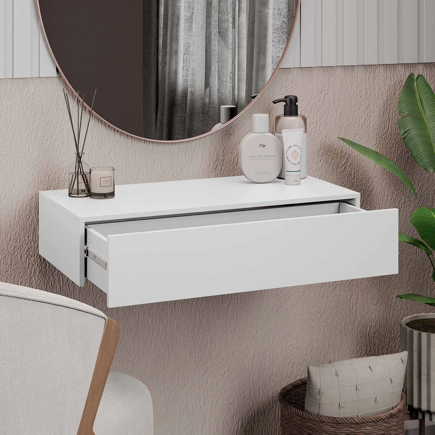 Seja para criar um cantinho de relaxamento em seu Quarto ou simplesmente adicionar mais praticidade ao seu dia a dia, esta Penteadeira Suspensa é a escolha ideal.