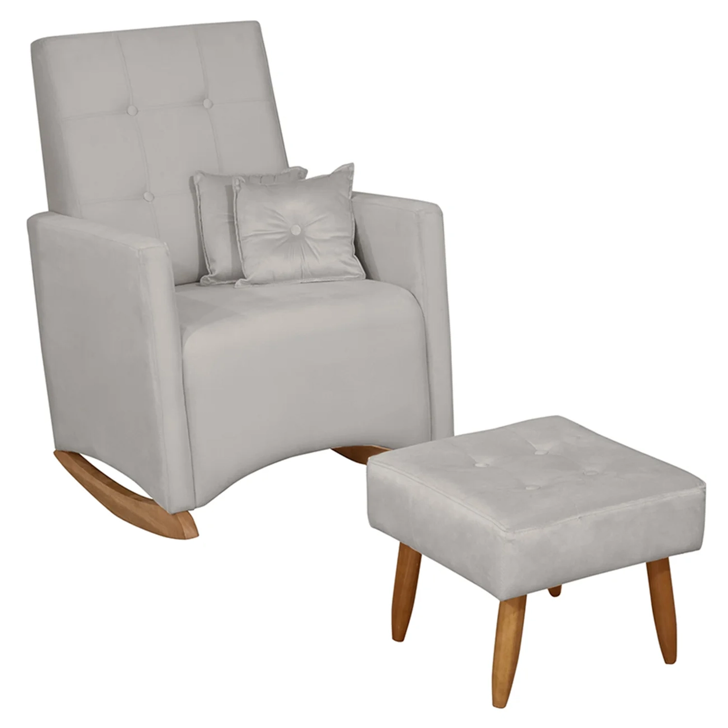 Conheça a Poltrona Amamentação Base Balanço e Puff Lola Veludo Cinza F03, da Mpozenato, a escolha ideal para tornar os cuidados com seu bebê mais confortáveis e tranquilos.