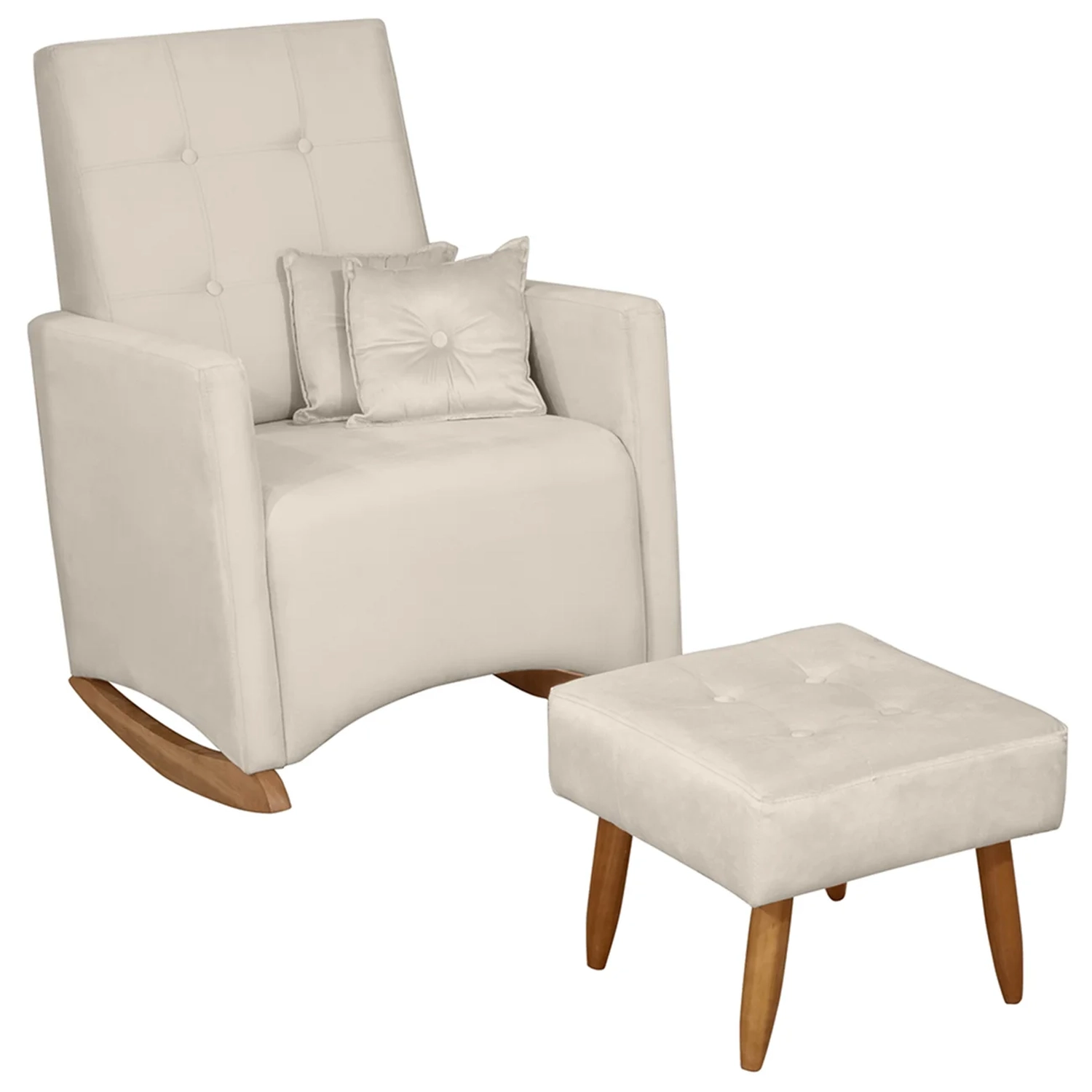 Conheça a Poltrona Amamentação Base Balanço e Puff Lola Veludo Off F03, da Mpozenato, a escolha ideal para tornar os cuidados com seu bebê mais confortáveis e tranquilos.