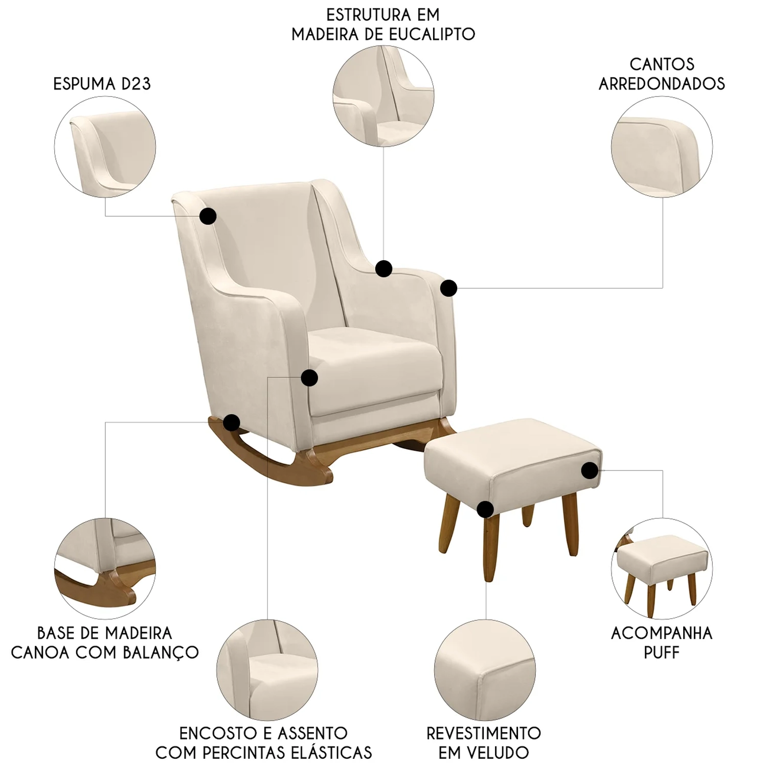 Conheça a Poltrona Amamentação Base Balanço e Puff Vick Veludo Off F03, da Mpozenato, a escolha ideal para tornar os cuidados com seu bebê mais confortáveis e tranquilos.