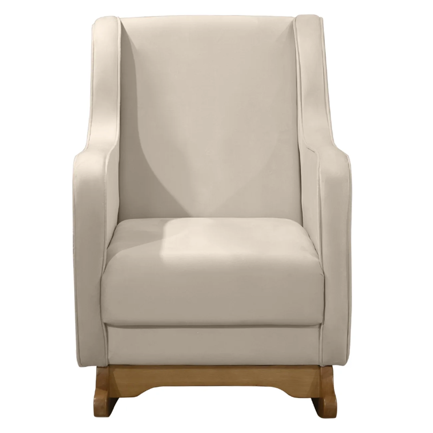 Com estrutura em madeira de eucalipto, oferece resistência e durabilidade no uso diário. A espuma D-23 combinada com o tecido veludo da Poltrona proporciona um toque macio e agradável, excelente para longas períodos de amamentação. Seus pés de madeira contam com suporte estável e acabamento sofisticado, enquanto o mecanismo de balanço suaviza os movimentos, sendo perfeito para ninar o neném, promovendo relaxamento e bem-estar. O assento e o encosto são sustentados por percintas elásticas, garantindo firmeza e apoio adequados. O Puff incluso é ótimo para descansar os pés e aumentar ainda mais o conforto. Perfeita para quem busca praticidade e estilo, essa Poltrona de Amamentação se adapta facilmente a qualquer ambiente, seja no Quarto de bebê, na Sala de Estar ou em outros espaços, trazendo elegância e aconchego.