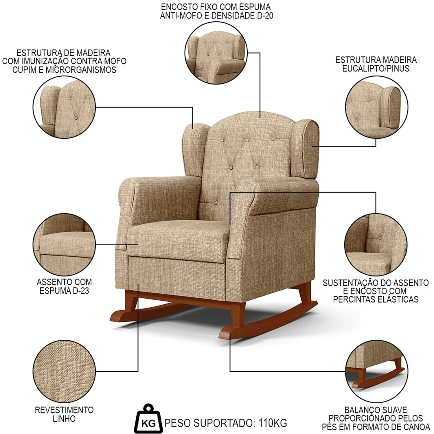 Peso Suportado: 110 kg.