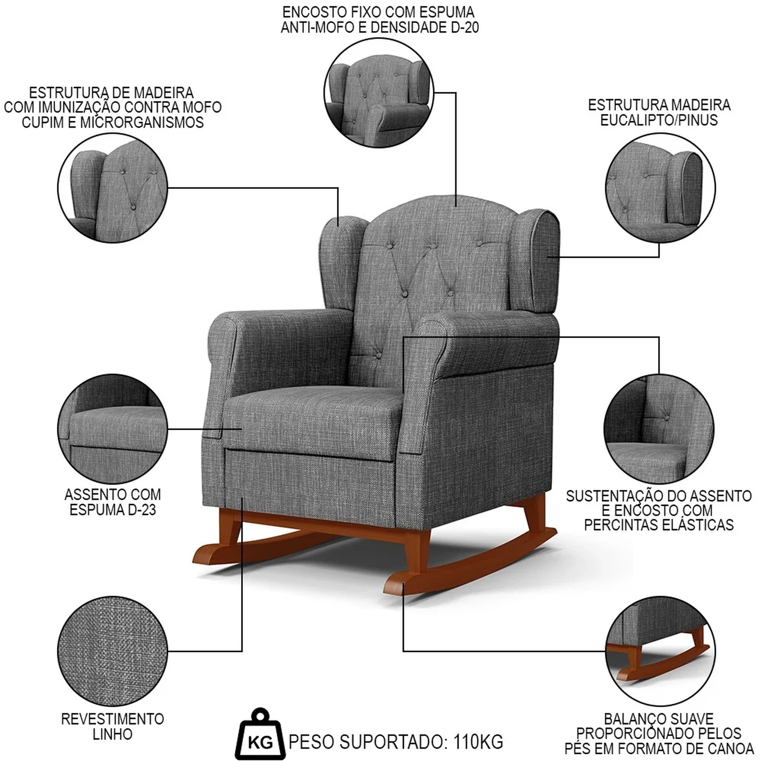 A Poltrona Amamentação Base Madeira Balanço e Puff Letícia Linho Cinza Escuro - Phoenix Baby é a escolha ideal para as mamães que buscam conforto, beleza e qualidade. Ela possui uma estrutura de madeira de reflorestamento com imunização contra mofo, cupim e microrganismos, garantindo maior durabilidade e resistência. Além disso, vem com um puff para apoiar os pés e relaxar. A sustentação do assento e encosto é feita com percintas elásticas que proporcionam mais maciez e ergonomia. A base canoa com balanço permite um movimento suave e relaxante, ideal para ninar o bebê ou descansar após um dia cansativo. A poltrona tem um design moderno e elegante que combina com qualquer ambiente. Ela está disponível em várias cores para você escolher a que mais combina com o seu estilo. Não perca essa oportunidade de ter uma Poltrona de Amamentação e Descanso na sua casa. Você vai se surpreender com o conforto e a qualidade dessa poltrona. Compre já!