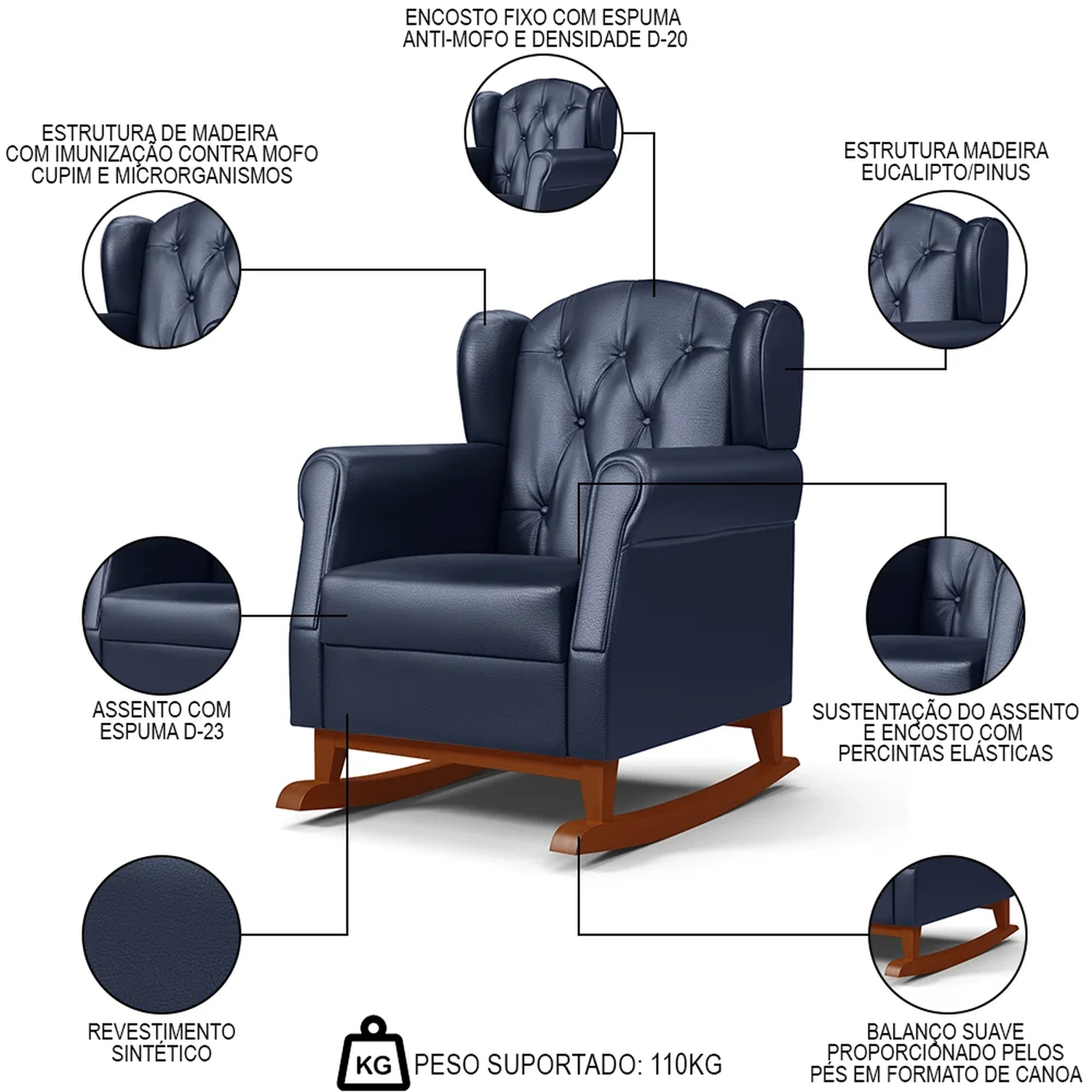 Peso Suportado: 110 kg.