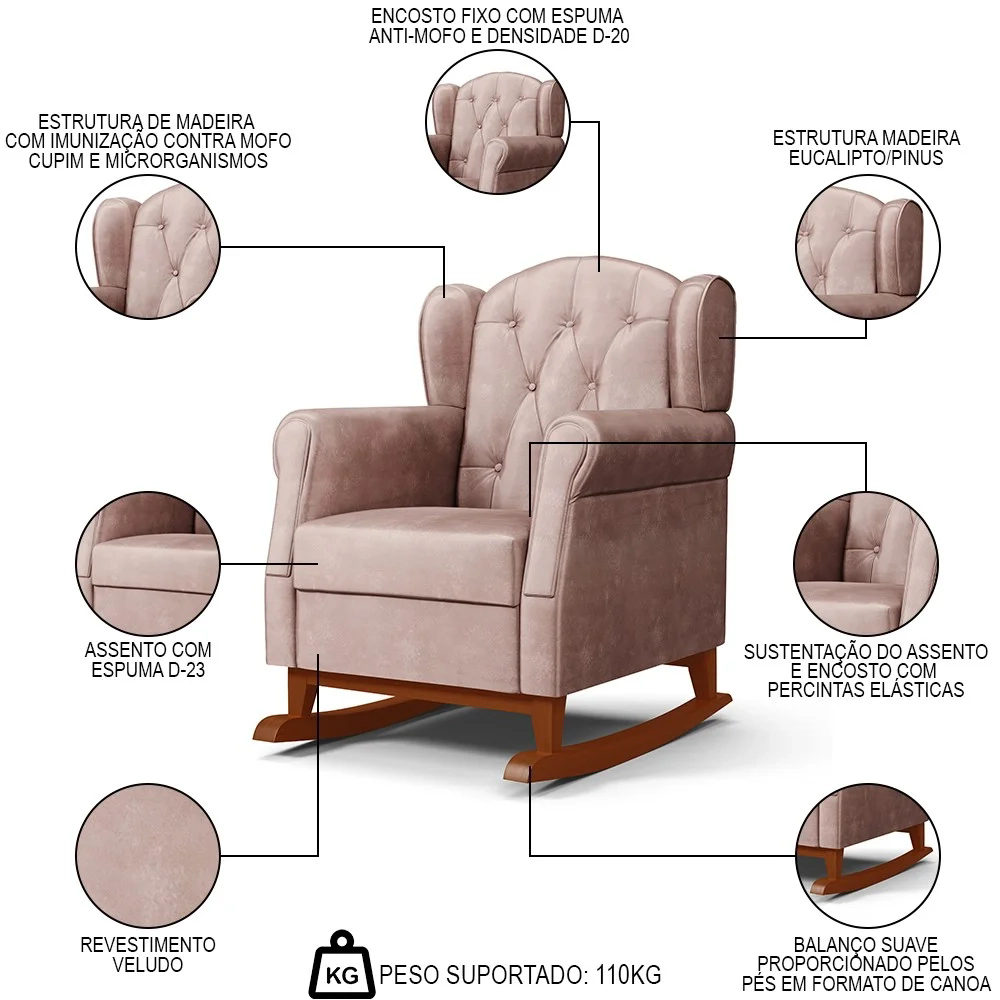 A Poltrona Amamentação Base Madeira Balanço e Puff Lucy Z39 Veludo Rosê - Mpozenato é a escolha ideal para as mamães que buscam conforto, beleza e qualidade. Ela possui uma estrutura de madeira de reflorestamento com imunização contra mofo, cupim e microrganismos, garantindo maior durabilidade e resistência. Além disso, vem com um puff para apoiar os pés e relaxar. A sustentação do assento e encosto é feita com percintas elásticas que proporcionam mais maciez e ergonomia. A base canoa com balanço permite um movimento suave e relaxante, ideal para ninar o bebê ou descansar após um dia cansativo. A poltrona tem um design moderno e elegante que combina com qualquer ambiente. Ela está disponível em várias cores para você escolher a que mais combina com o seu estilo. Não perca essa oportunidade de ter uma Poltrona de Amamentação e Descanso na sua casa. Você vai se surpreender com o conforto e a qualidade dessa poltrona. Compre já!