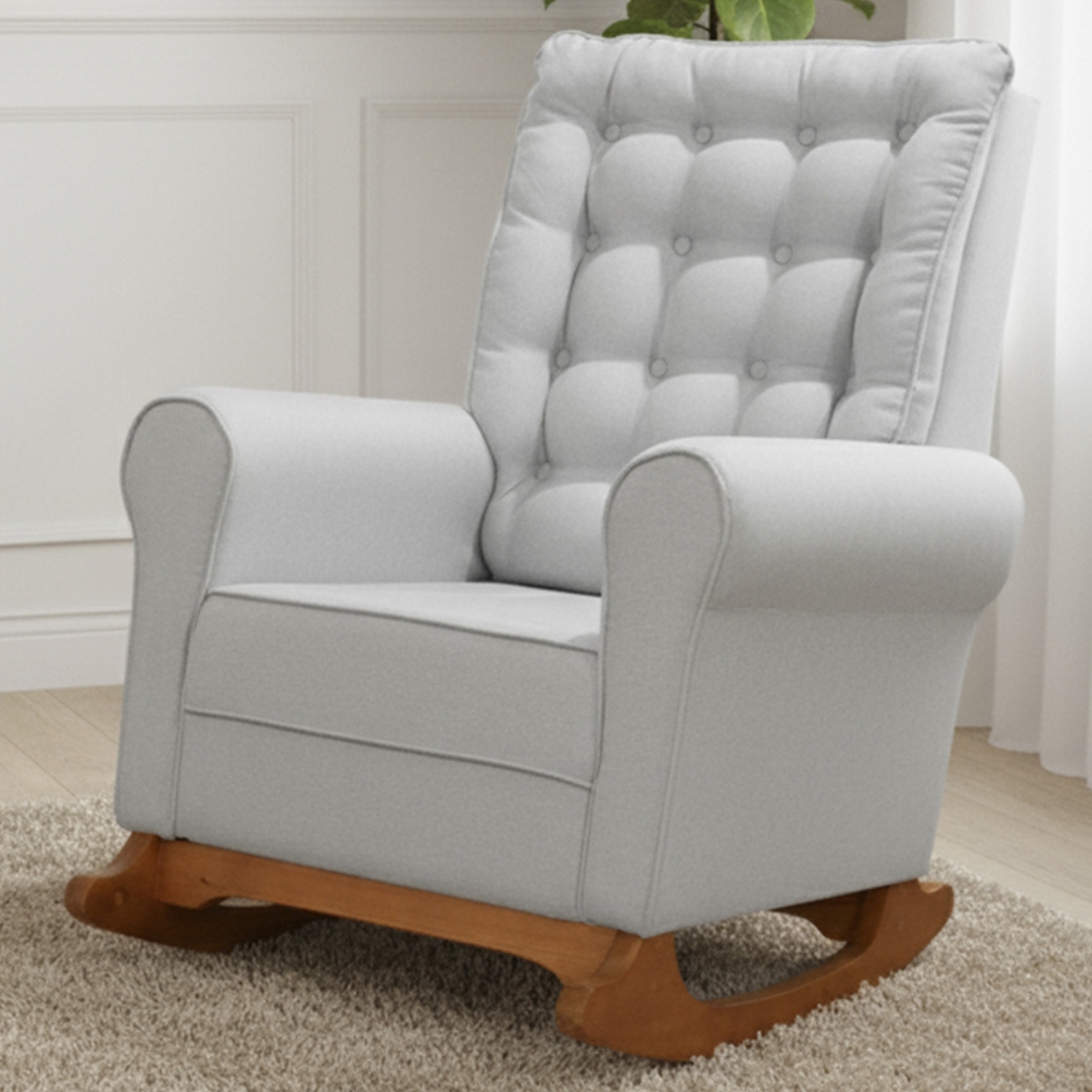 Com estrutura em madeira de eucalipto, oferece resistência e durabilidade no uso diário. A espuma D-23 combinada com o tecido veludo da Poltrona proporciona um toque macio e agradável, excelente para longas períodos de amamentação. Seus pés de madeira contam com suporte estável e acabamento sofisticado, enquanto o mecanismo de balanço suaviza os movimentos, sendo perfeito para ninar o neném, promovendo relaxamento e bem-estar. O assento e o encosto são sustentados por percintas elásticas, garantindo firmeza e apoio adequados. Perfeita para quem busca praticidade e estilo, essa Poltrona de Amamentação se adapta facilmente a qualquer ambiente, seja no Quarto de bebê, na Sala de Estar ou em outros espaços, trazendo elegância e aconchego.