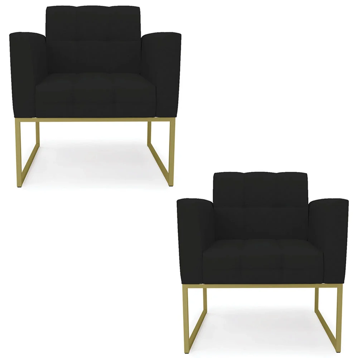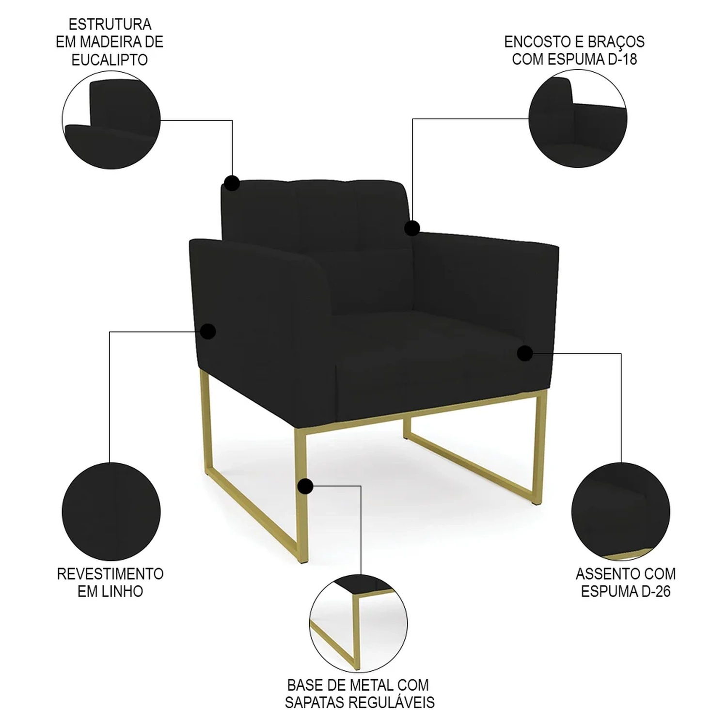 Você está procurando um Kit Poltrona que combine com a sua Sala De Estar, recepção ou seu quarto, que ofereça conforto e qualidade? Então você vai adorar a Poltrona Base Industrial Dourado Kit 2 Ana Linho Preto, da Ibiza!
