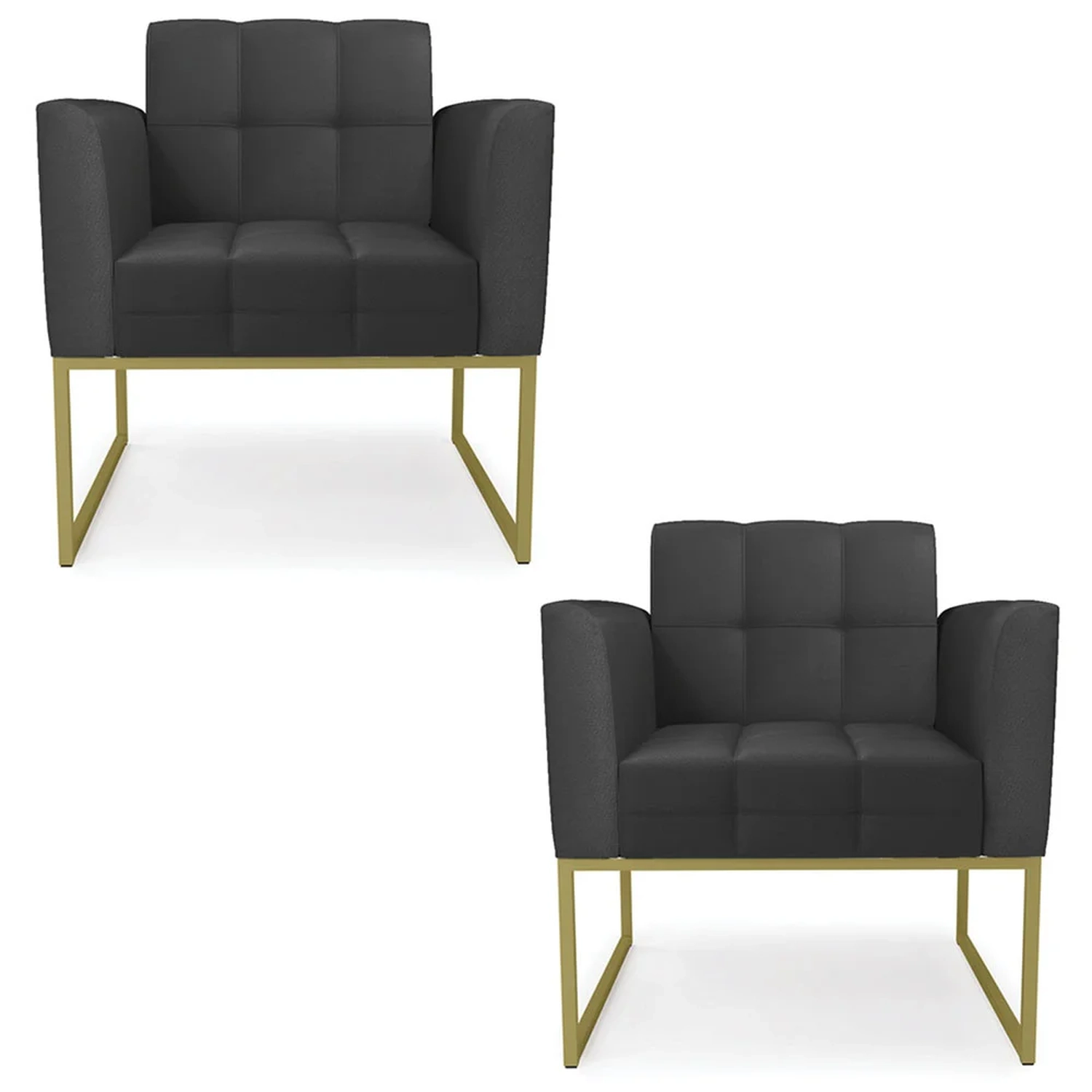 Você está procurando um Kit Poltrona que combine com a sua Sala De Estar, recepção ou seu quarto, que ofereça conforto e qualidade? Então você vai adorar a Poltrona Base Industrial Dourado Kit 2 Ana Sintético Preto, da Ibiza!