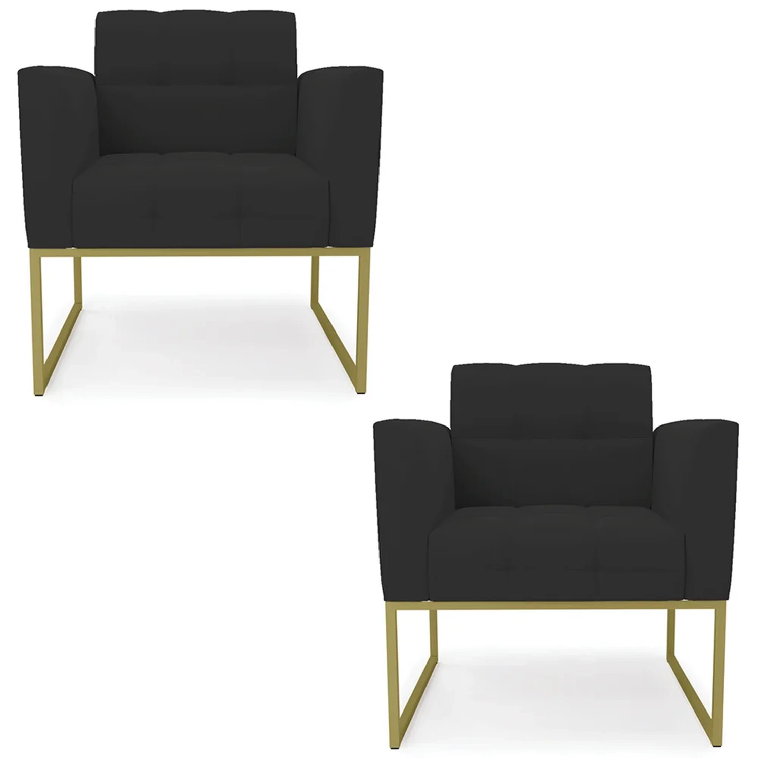 Você está procurando um Kit Poltrona que combine com a sua Sala De Estar, recepção ou seu quarto, que ofereça conforto e qualidade? Então você vai adorar a Poltrona Base Industrial Dourado Kit 2 Ana Veludo Preto, da Ibiza!