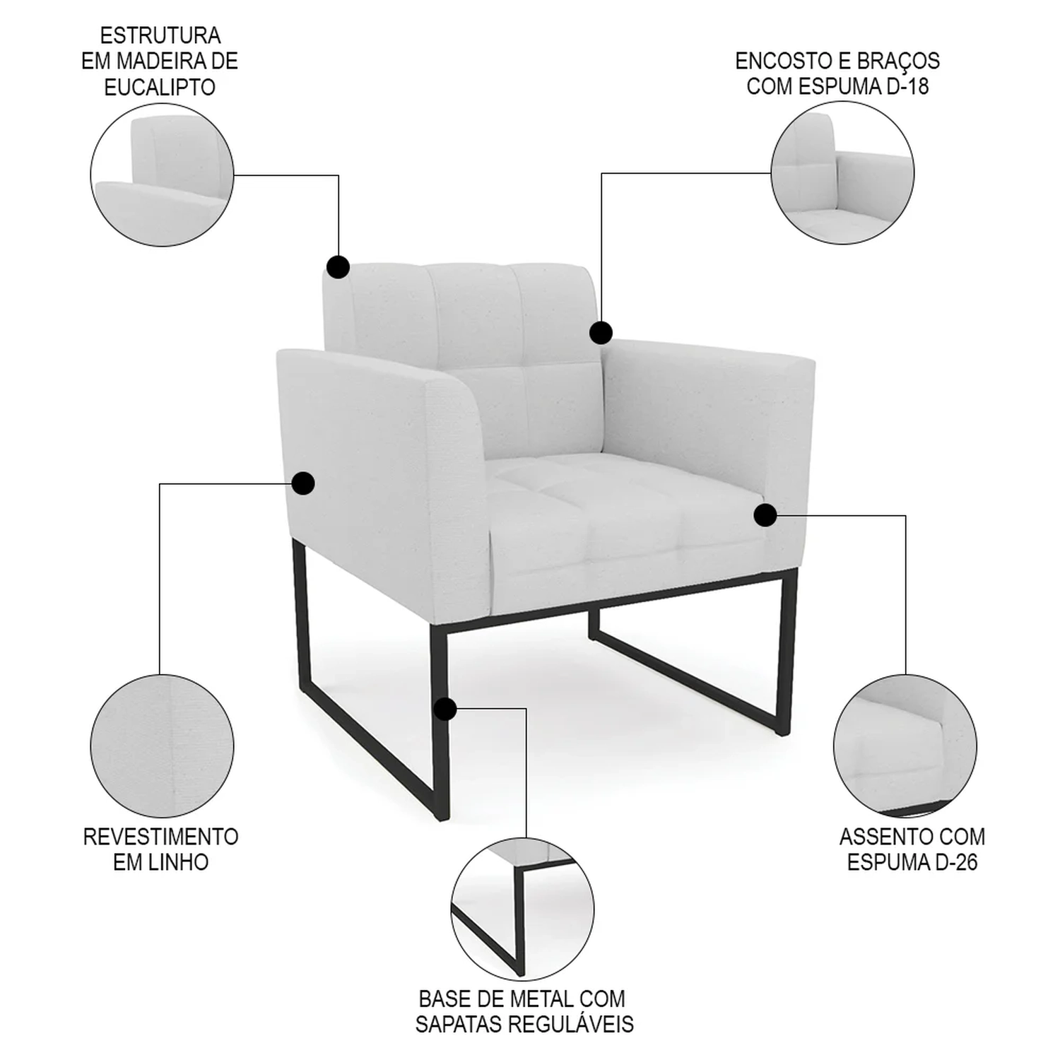 Você está procurando um Kit Poltrona que combine com a sua Sala De Estar, recepção ou seu quarto, que ofereça conforto e qualidade? Então você vai adorar a Poltrona Base Industrial Preto Kit 2 Ana Linho Cinza, da Ibiza!