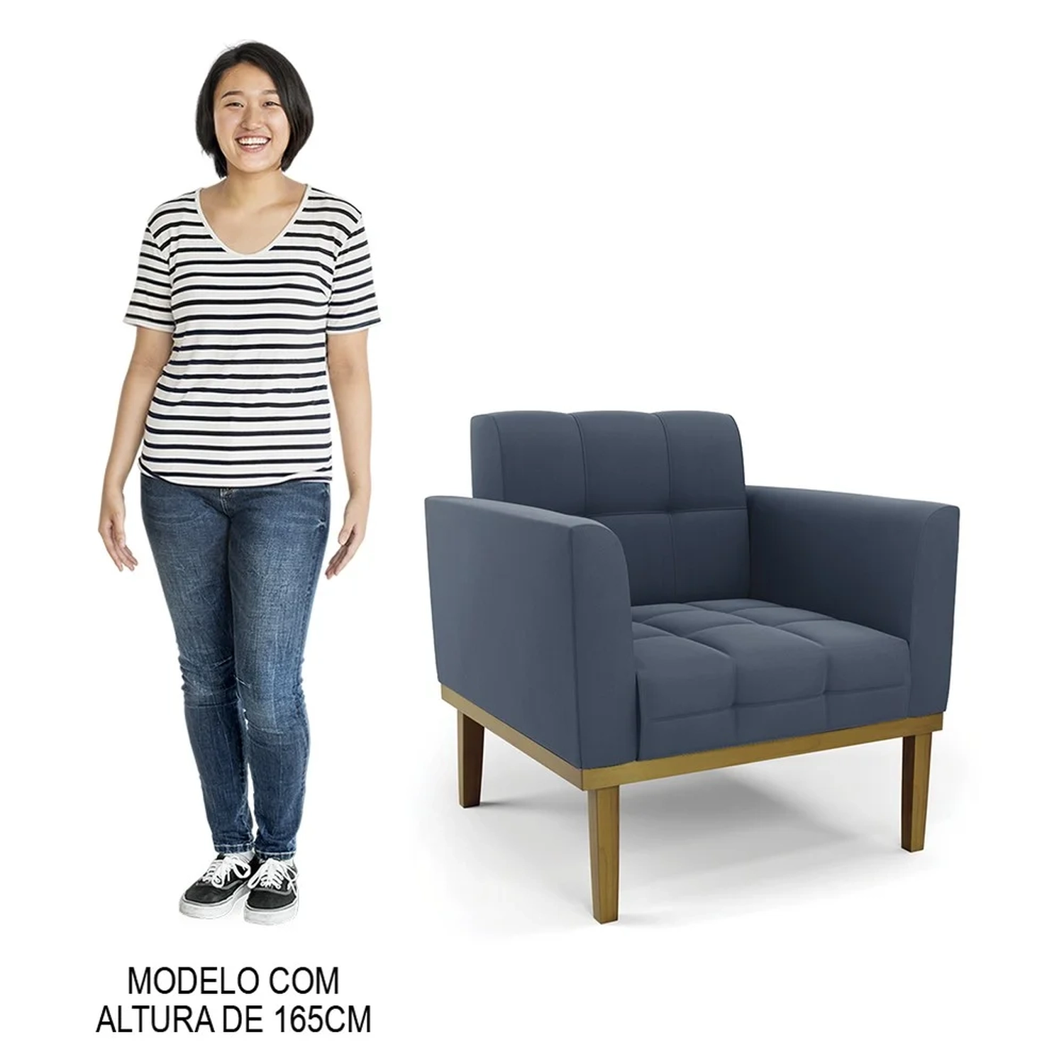 A Poltrona Decorativa é revestida em Suede, que é durável e fácil de limpar, e ainda valoriza o design da poltrona. Os braços e encosto são confortáveis em espuma D-18, já o assento é com espuma D-26 de alta densidade, que garante um assento firme e aconchegante, ideal para relaxar após um dia cansativo. A base em madeira de eucalipto é um charme à parte, que confere um toque Rústico e sofisticado à peça. São 2 poltronas com estrutura resistente que suporta até 120 kg cada. A montagem é muito simples, pois a poltrona já vem pronta, bastando apenas fixar a base com os parafusos que acompanham o produto. A limpeza também é muito prática, pois basta utilizar um pano limpo e levemente úmido, sem produtos abrasivos, para manter a sua poltrona sempre em bom estado. Sem dúvidas a Poltrona Para Sala vai transformar seu ambiente, deixando mais confortável e estiloso!