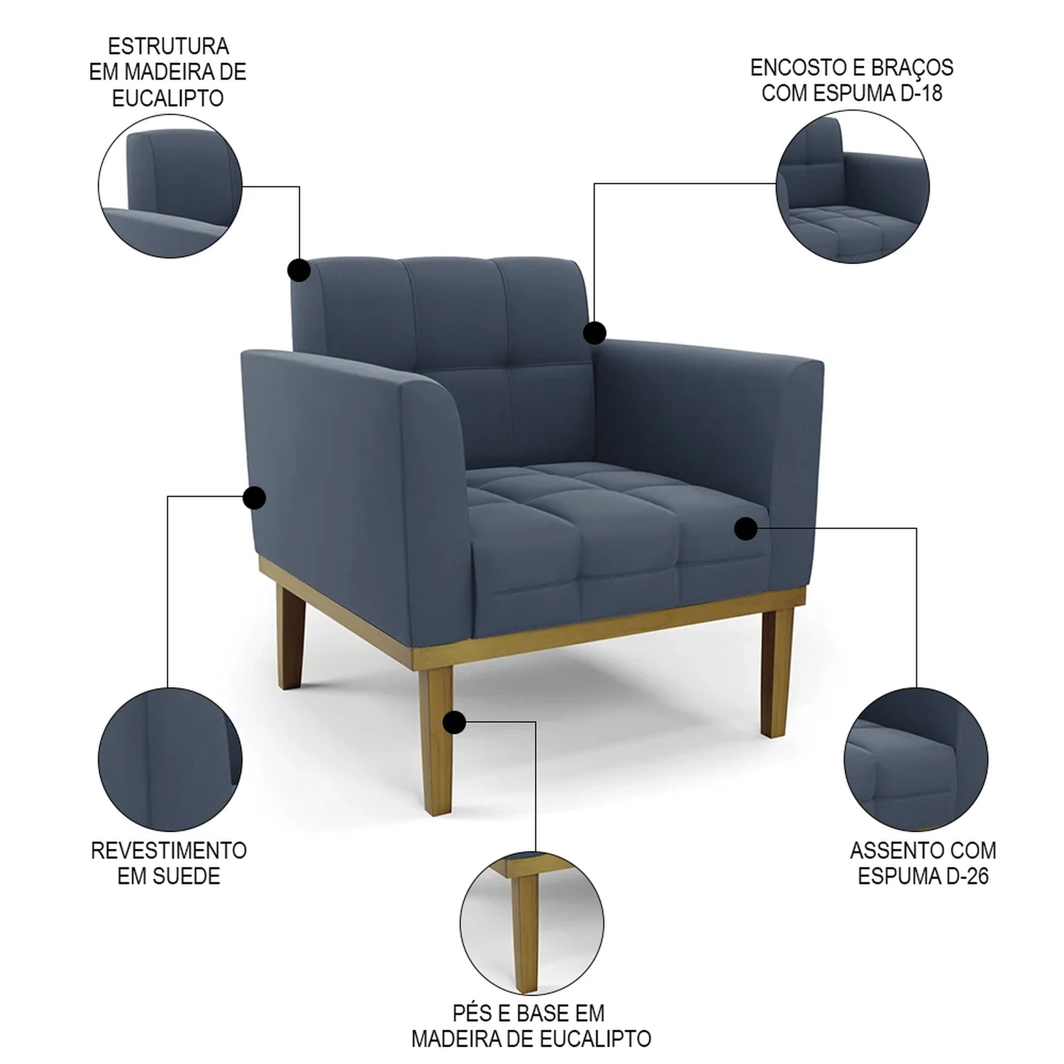 Material dos Pés: Madeira Eucalipto.