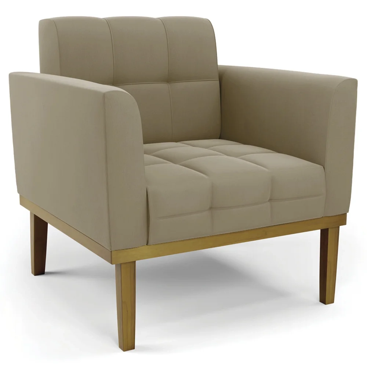 A Poltrona Decorativa é revestida em Suede, que é durável e fácil de limpar, e ainda valoriza o design da poltrona. Os braços e encosto são confortáveis em espuma D-18, já o assento é com espuma D-26 de alta densidade, que garante um assento firme e aconchegante, ideal para relaxar após um dia cansativo. A base em madeira de eucalipto é um charme à parte, que confere um toque Rústico e sofisticado à peça. São 2 poltronas com estrutura resistente que suporta até 120 kg cada. A montagem é muito simples, pois a poltrona já vem pronta, bastando apenas fixar a base com os parafusos que acompanham o produto. A limpeza também é muito prática, pois basta utilizar um pano limpo e levemente úmido, sem produtos abrasivos, para manter a sua poltrona sempre em bom estado. Sem dúvidas a Poltrona Para Sala vai transformar seu ambiente, deixando mais confortável e estiloso!