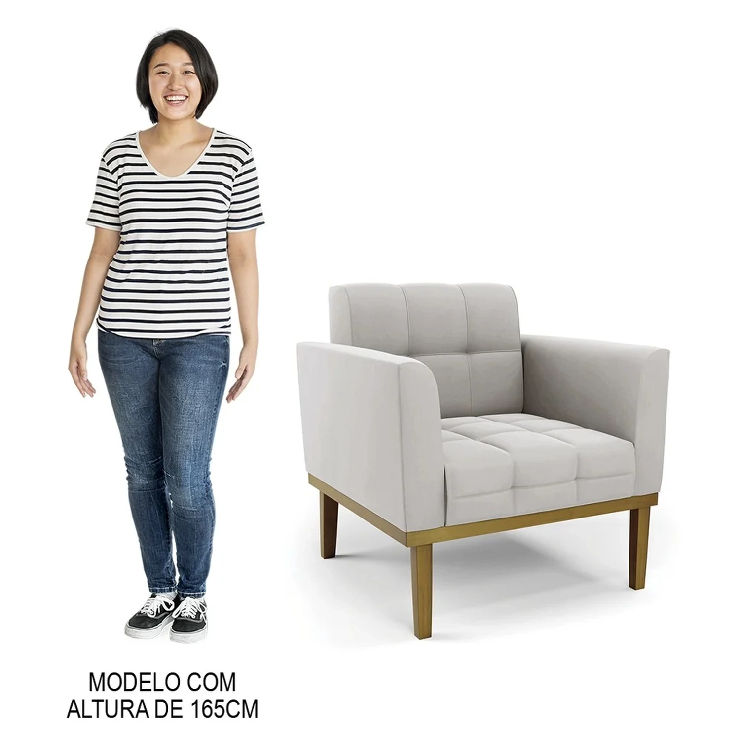 A Poltrona Decorativa é revestida em Veludo, que é durável e fácil de limpar, e ainda valoriza o design da poltrona. Os braços e encosto são confortáveis em espuma D-18, já o assento é com espuma D-26 de alta densidade, que garante um assento firme e aconchegante, ideal para relaxar após um dia cansativo. A base em madeira de eucalipto é um charme à parte, que confere um toque Rústico e sofisticado à peça. São 2 poltronas com estrutura resistente que suporta até 120 kg cada. A montagem é muito simples, pois a poltrona já vem pronta, bastando apenas fixar a base com os parafusos que acompanham o produto. A limpeza também é muito prática, pois basta utilizar um pano limpo e levemente úmido, sem produtos abrasivos, para manter a sua poltrona sempre em bom estado. Sem dúvidas a Poltrona Para Sala vai transformar seu ambiente, deixando mais confortável e estiloso!