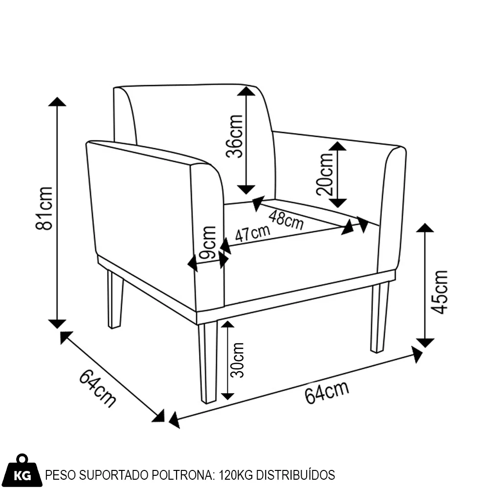 A Poltrona Decorativa é revestida em sintético PU, que é durável e fácil de limpar, e ainda valoriza o design da poltrona. Os braços e encosto são confortáveis em espuma D-18, já o assento é com espuma D-26 de alta densidade, que garante um assento firme e aconchegante, ideal para relaxar após um dia cansativo. A base em madeira de eucalipto é um charme à parte, que confere um toque Rústico e sofisticado à peça. São 2 poltronas com estrutura resistente que suporta até 120 kg cada. A montagem é muito simples, pois a poltrona já vem pronta, bastando apenas fixar a base com os parafusos que acompanham o produto. A limpeza também é muito prática, pois basta utilizar um pano limpo e levemente úmido, sem produtos abrasivos, para manter a sua poltrona sempre em bom estado. Sem dúvidas a Poltrona Para Sala vai transformar seu ambiente, deixando mais confortável e estiloso!