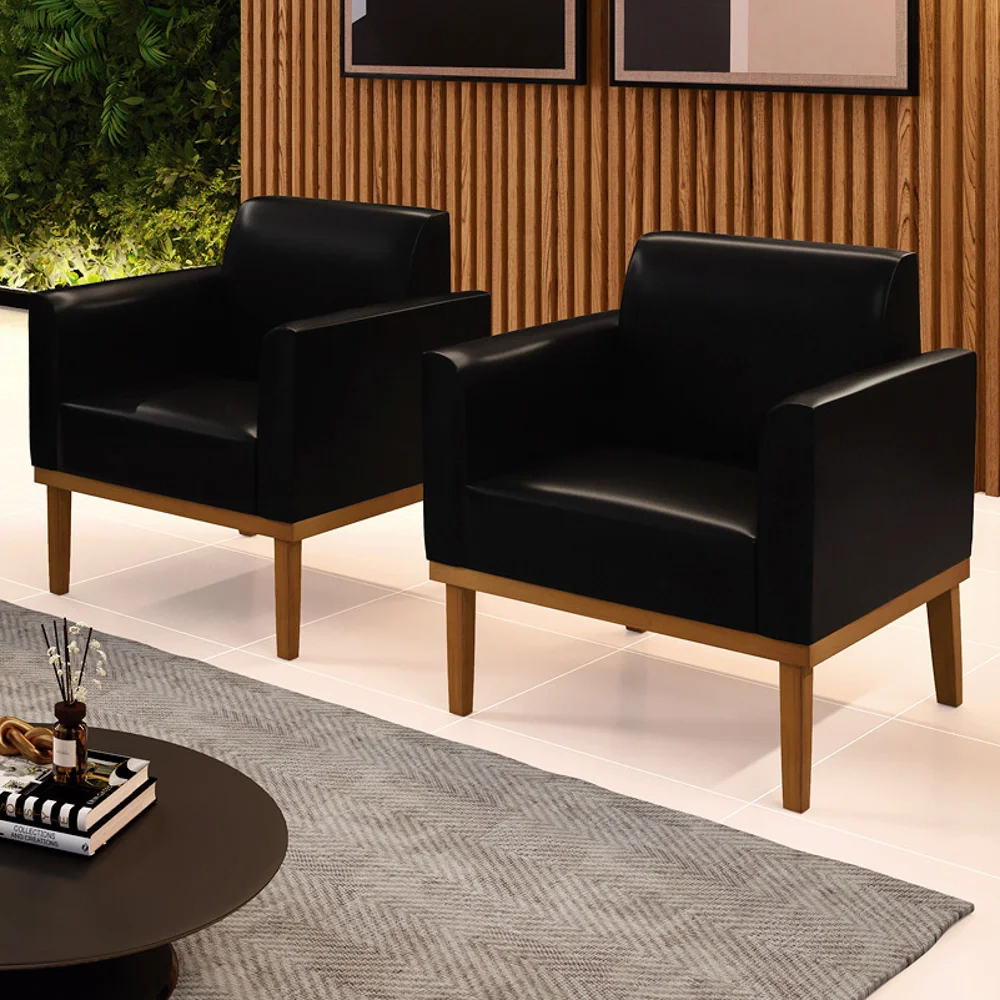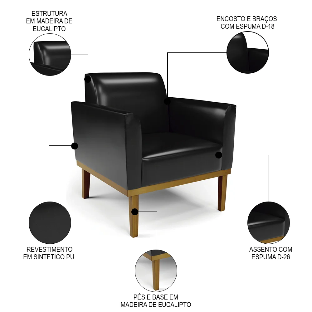 Você está procurando um Kit Poltrona que combine com a sua Sala De Estar, recepção ou seu quarto, que ofereça conforto e qualidade? Então você vai adorar a Poltrona Base Madeira Castanho Kit 2 Maressa Sintético PU Preto, da Ibiza!