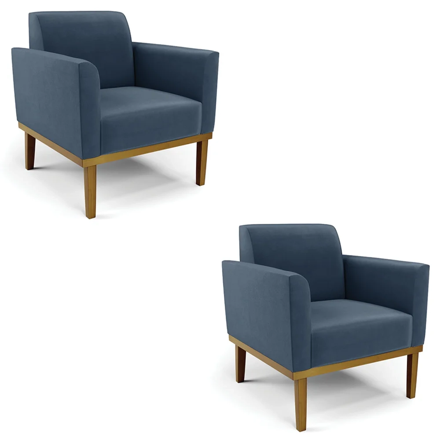 Você está procurando um Kit Poltrona que combine com a sua Sala De Estar, recepção ou seu quarto, que ofereça conforto e qualidade? Então você vai adorar a Poltrona Base Madeira Castanho Kit 2 Maressa Suede Azul Marinho, da Ibiza!